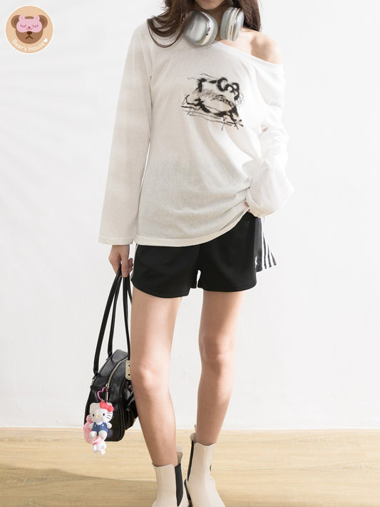 Hello Kitty เสื้อเเขนยาว ผ้าสลาฟบางนุ่ม ยืดได้ ใยผ้าตัวใหม่ ทรง oversize