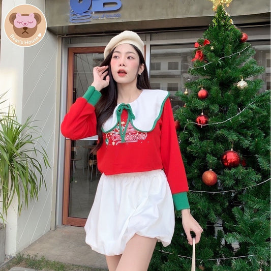 Jingle bell Christmas Crop เสื้อครอปเเขนยาว คอบัวใหญ่ สกรีนลาย🎄