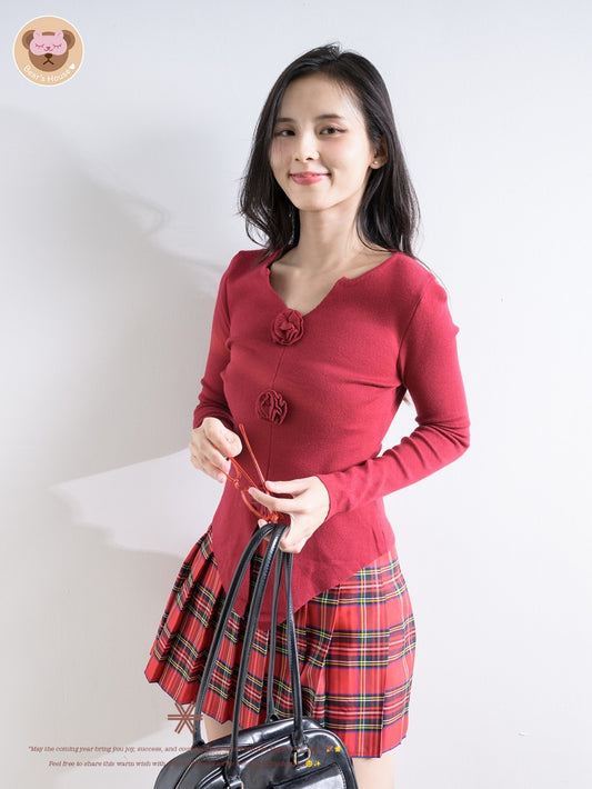 Lena Top เสื้อไหมพรม เเขนยาวเเต่งกุหลาบ ดีเทลปลายเสื้อสโลป เเต่งดอกกุหลาบ