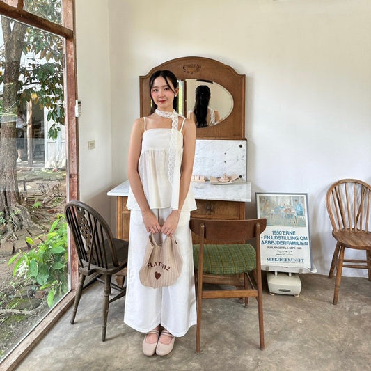Linen Set ชุดSetผ้าลินิน เสื้อสายเดี่ยวปรับสาย พร้อมกางเกงขายาว🌹