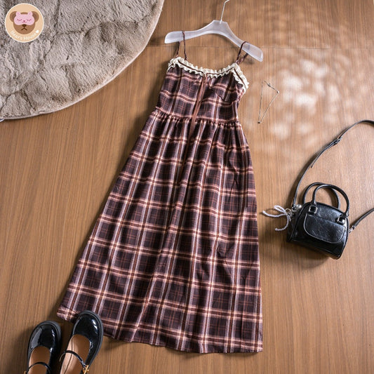 Daiki Santa Scotte Dress เดรสยาวลายสก็อต งานนำเข้า
