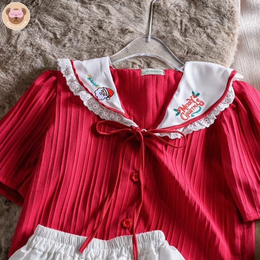 Kala Christmas Crop เสื้อครอปปัก ลาย 🎅น่ารัก เเต่งลูกไม้ช่วงคอ