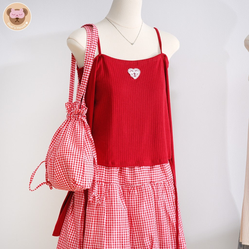 น้อง Meeny Crop เสื้อปาดไหล่สายเดี่ยว ผ้าร่อง เเต่งอกหัวใจ ดีเทลติดอะไหล่หัวใจ กลางอก