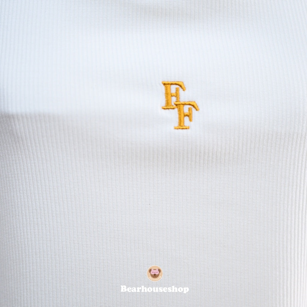 Effortlessly cute and strong, the Bina Top features a letter embroidery design and ribbed fabric that stretches to perfection. The halter neck style, side slit, and slanted front add an extra touch of chicness🔥, while the double-layer chest fabric offers extra support. Perfect for achieving a beautiful shirt style, this top is definitely a perfect ten.