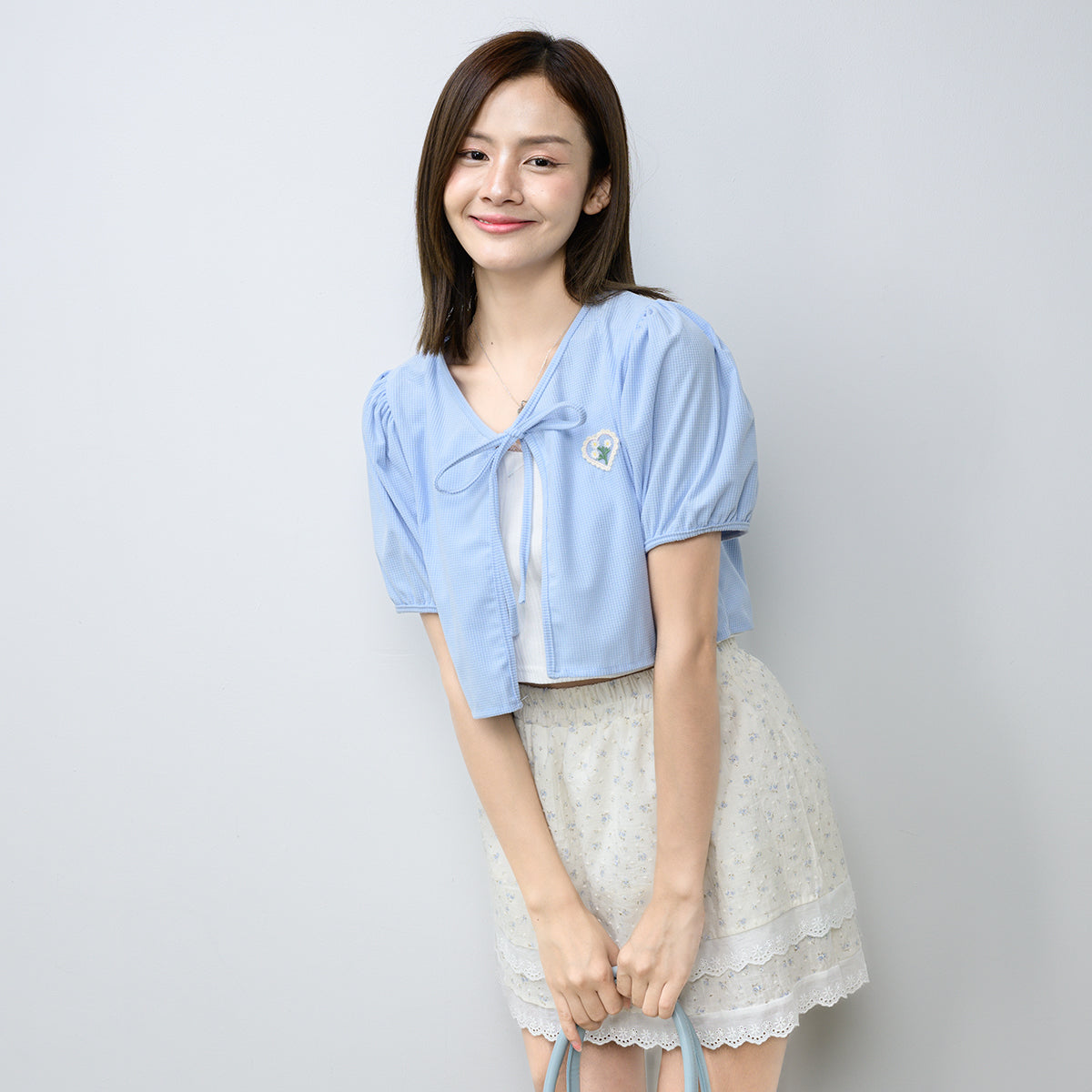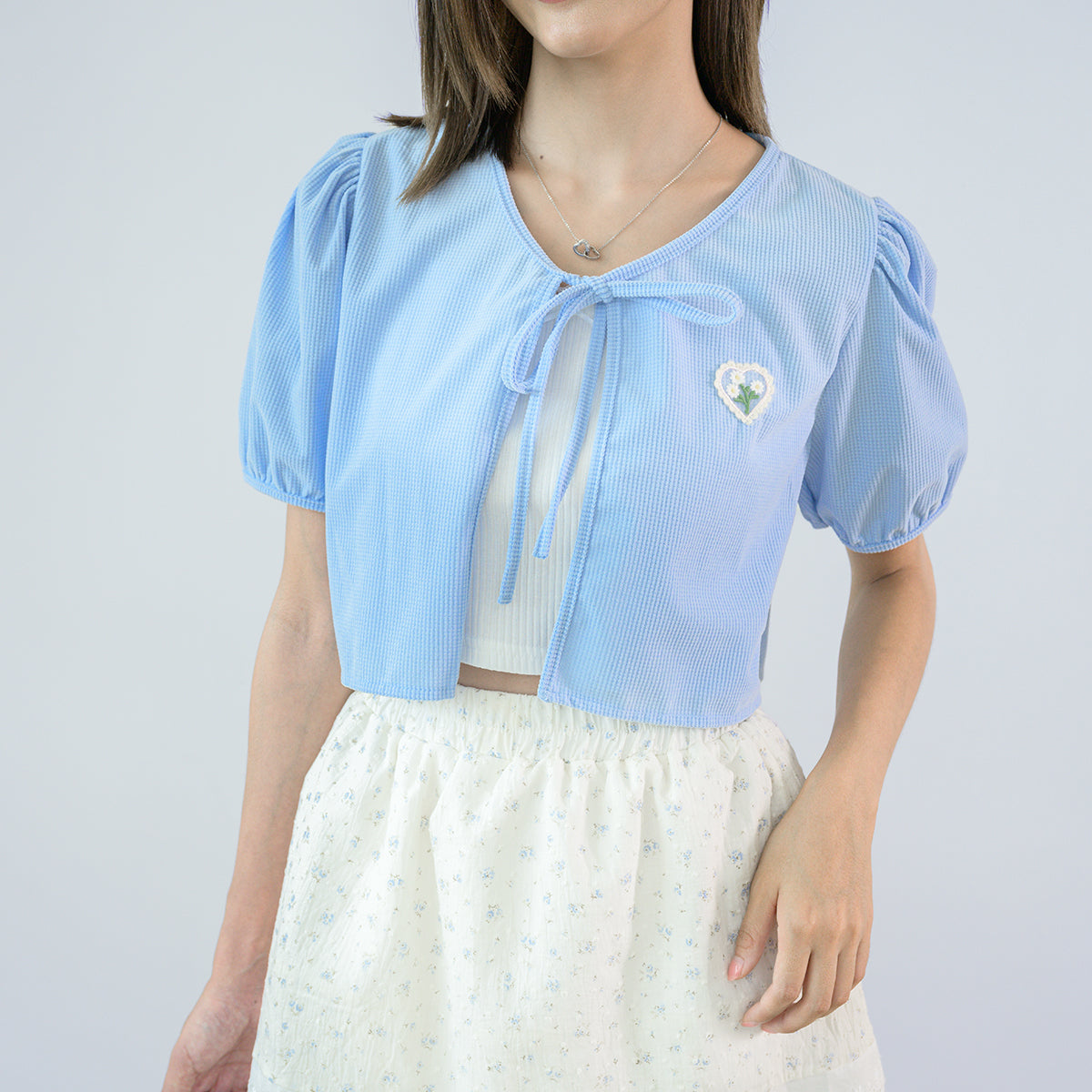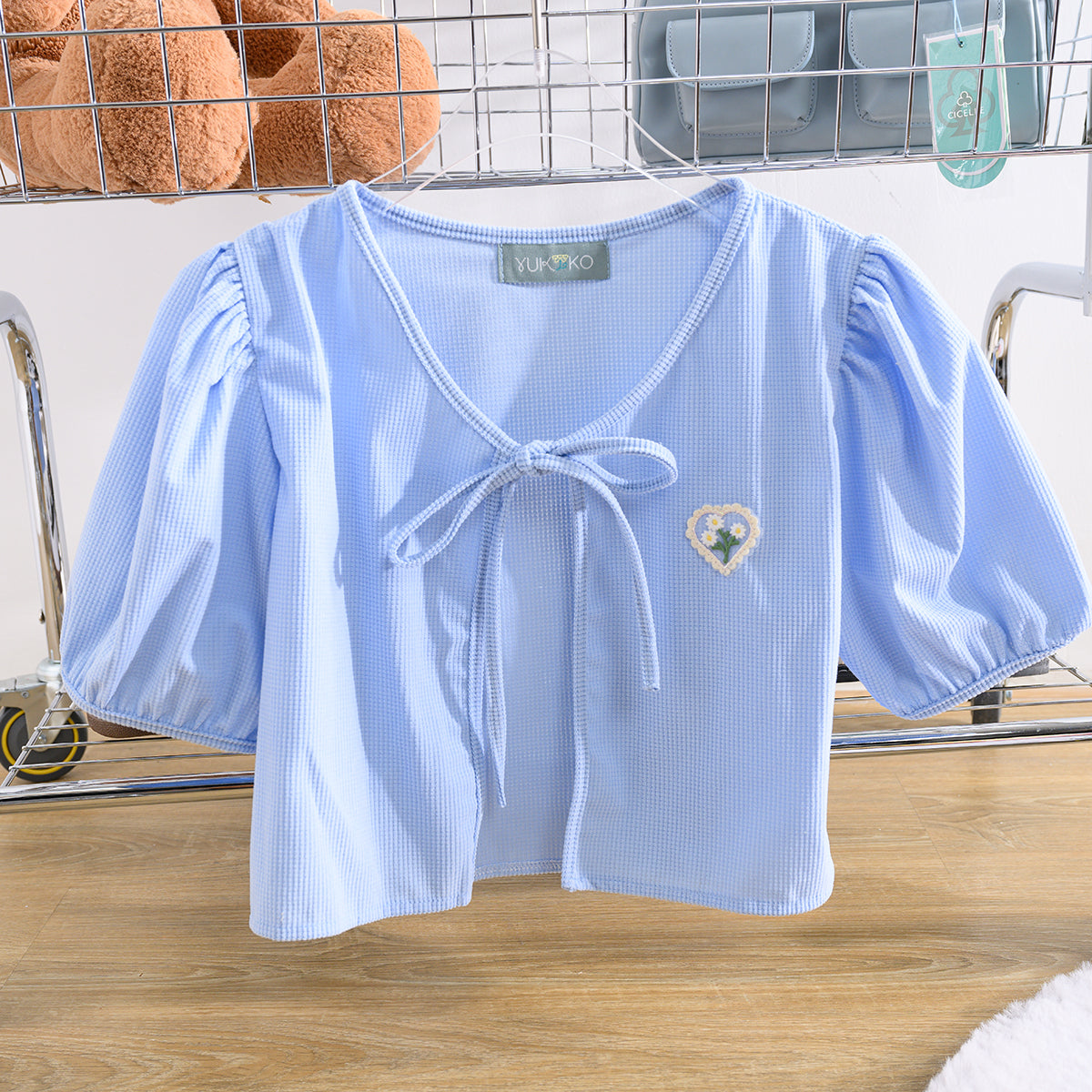 Stay warm and stylish with our Chinee Crop Doll Sleeve Coat! Made of soft corduroy and adorned with embroidered flower hearts, this coat features a front slit and a bow tie. Plus, the unique inflatable doll arms add a playful touch to your outfit. Perfect for a single cover look that's both cute and cosy.