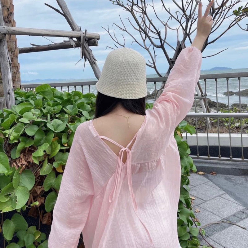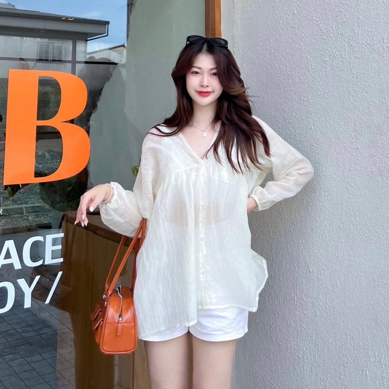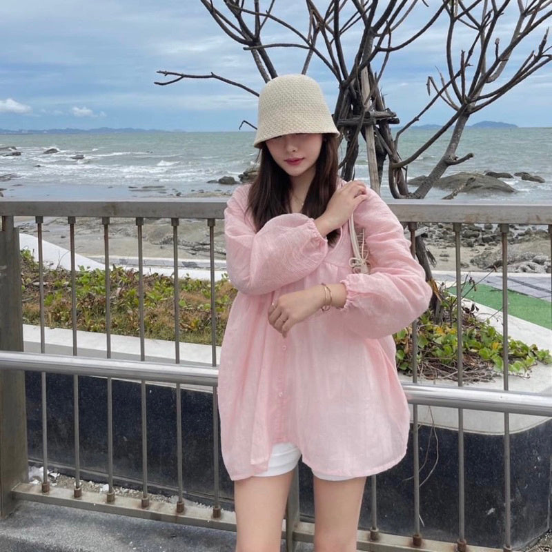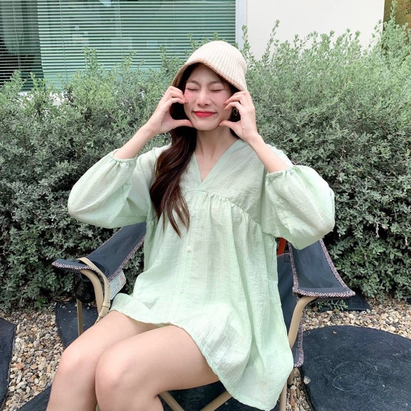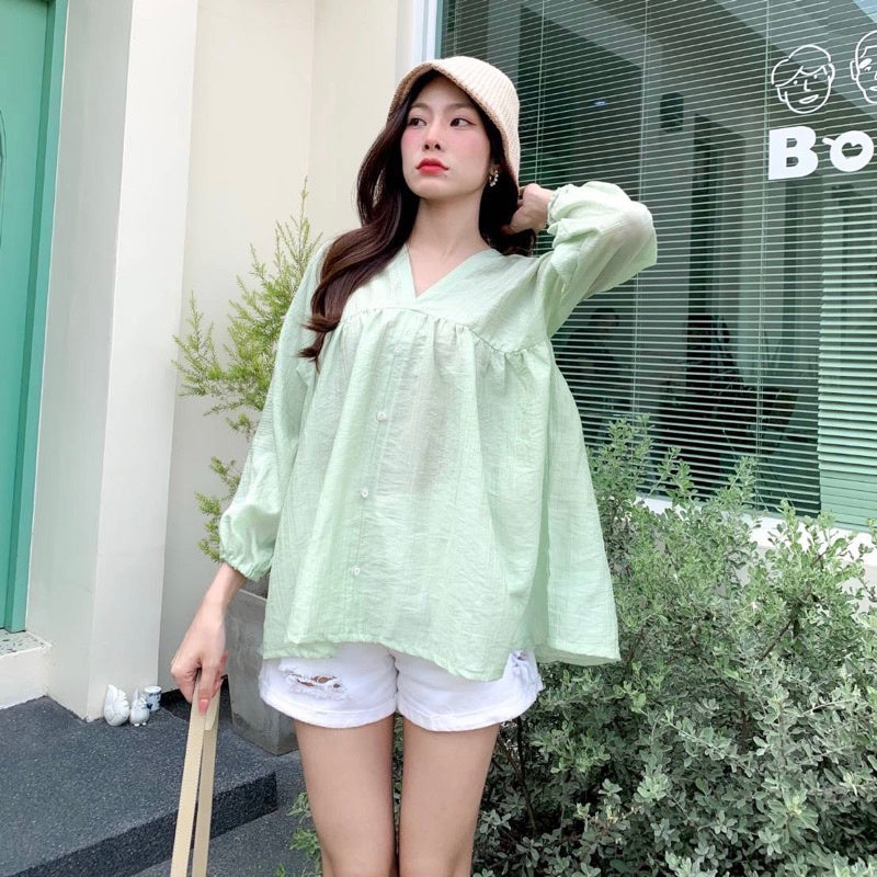Get summer-ready with the Collin V-neck long-sleeve shirt in a pastel hue. Made with lightweight fabric, this versatile piece can be worn on both sides and pairs perfectly with pants or skirts. Stay comfortable and stylish all season long with the bonus of front buttons.