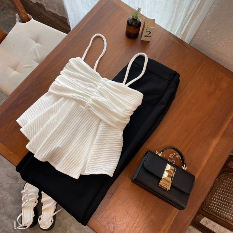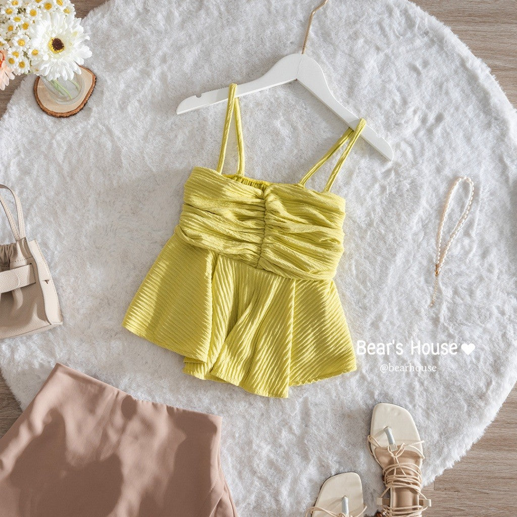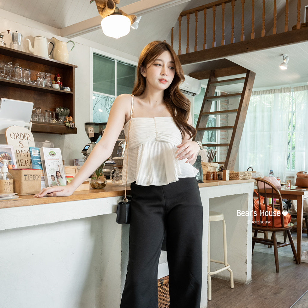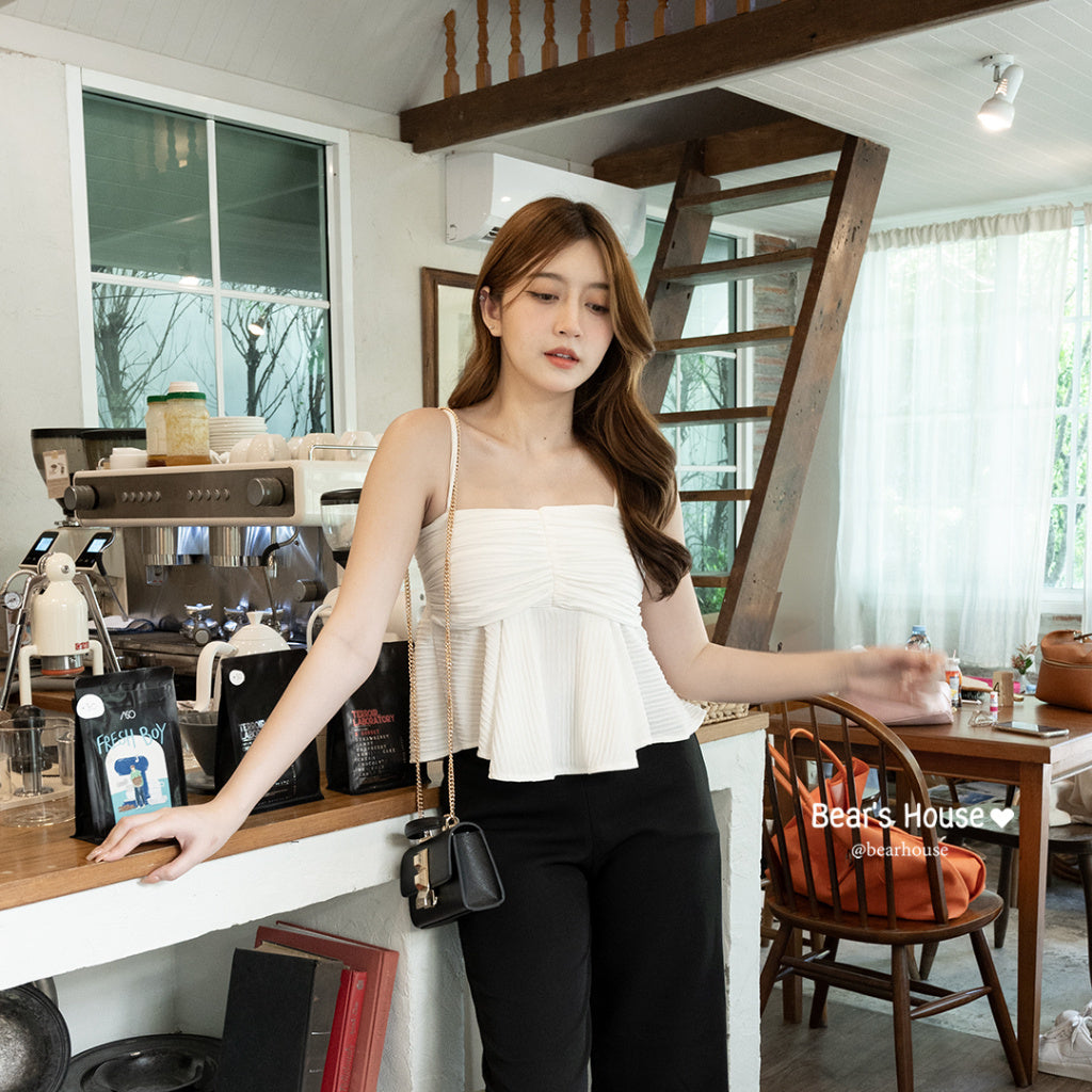 The Cuffin Crop is a trendy top with a charming chest detail. Its ribbed material allows for comfortable stretch and cute bow accents complete the look. It is versatile and can be worn with skirts or long jeans.