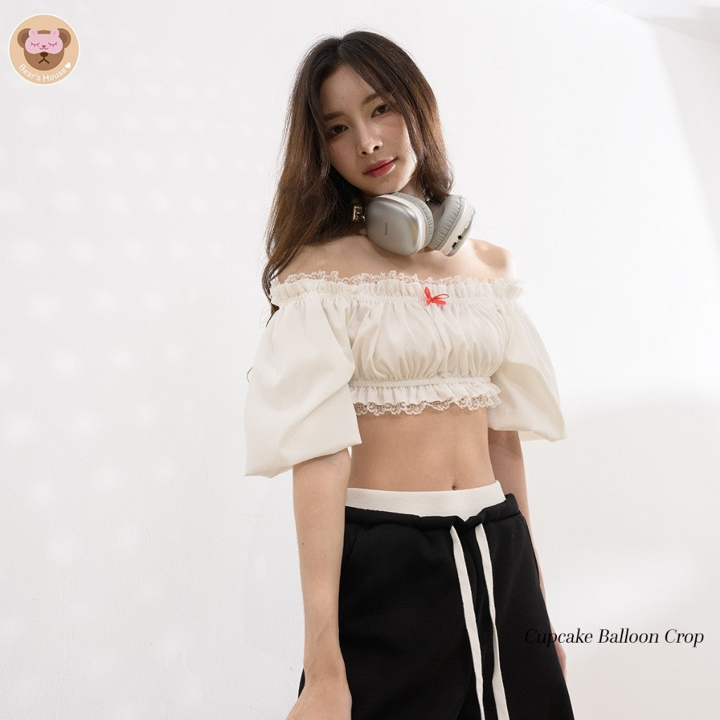 Cupcake Balloon Crop เสื้อครอปเปิดไหล่แขนพอง สวยตามแบบฉบับสาวโยชิ ลุคคุนหนู น่ารักมากค่ะแม่