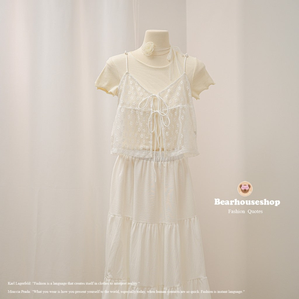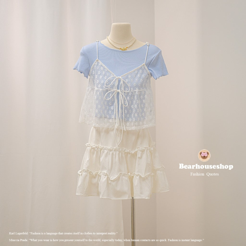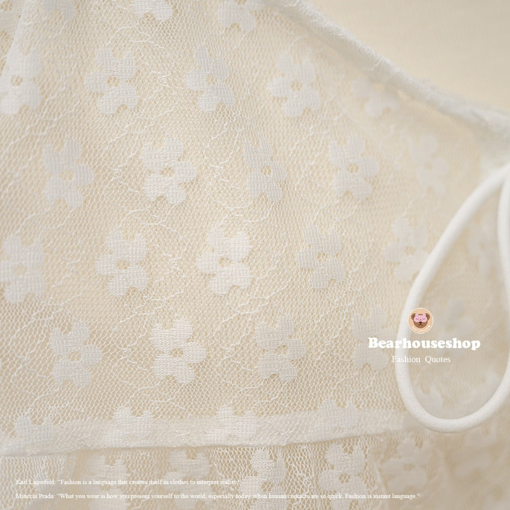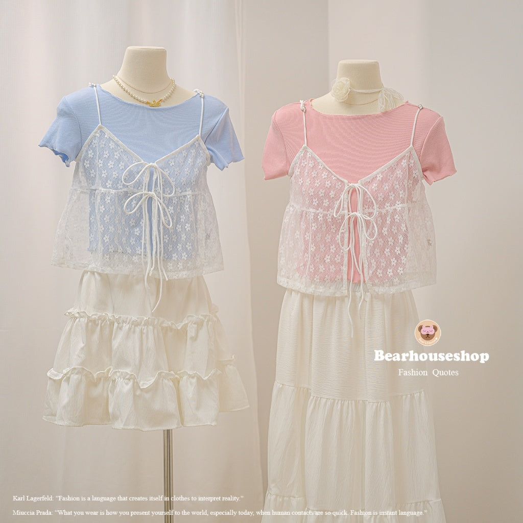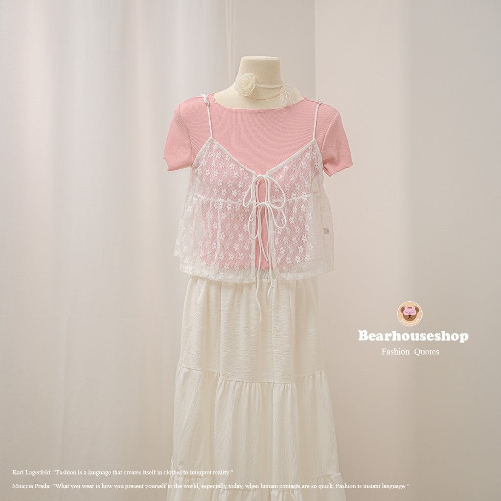 Unleash your playful side with the Daiki Set, featuring a t-shirt in slit fabric with jagged edges and mesh lace straps. Tie a cute bow in front and adjust the strap for the perfect fit. Mix and match for endless style possibilities! ❤️
