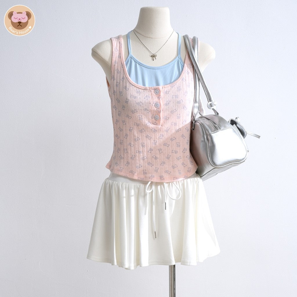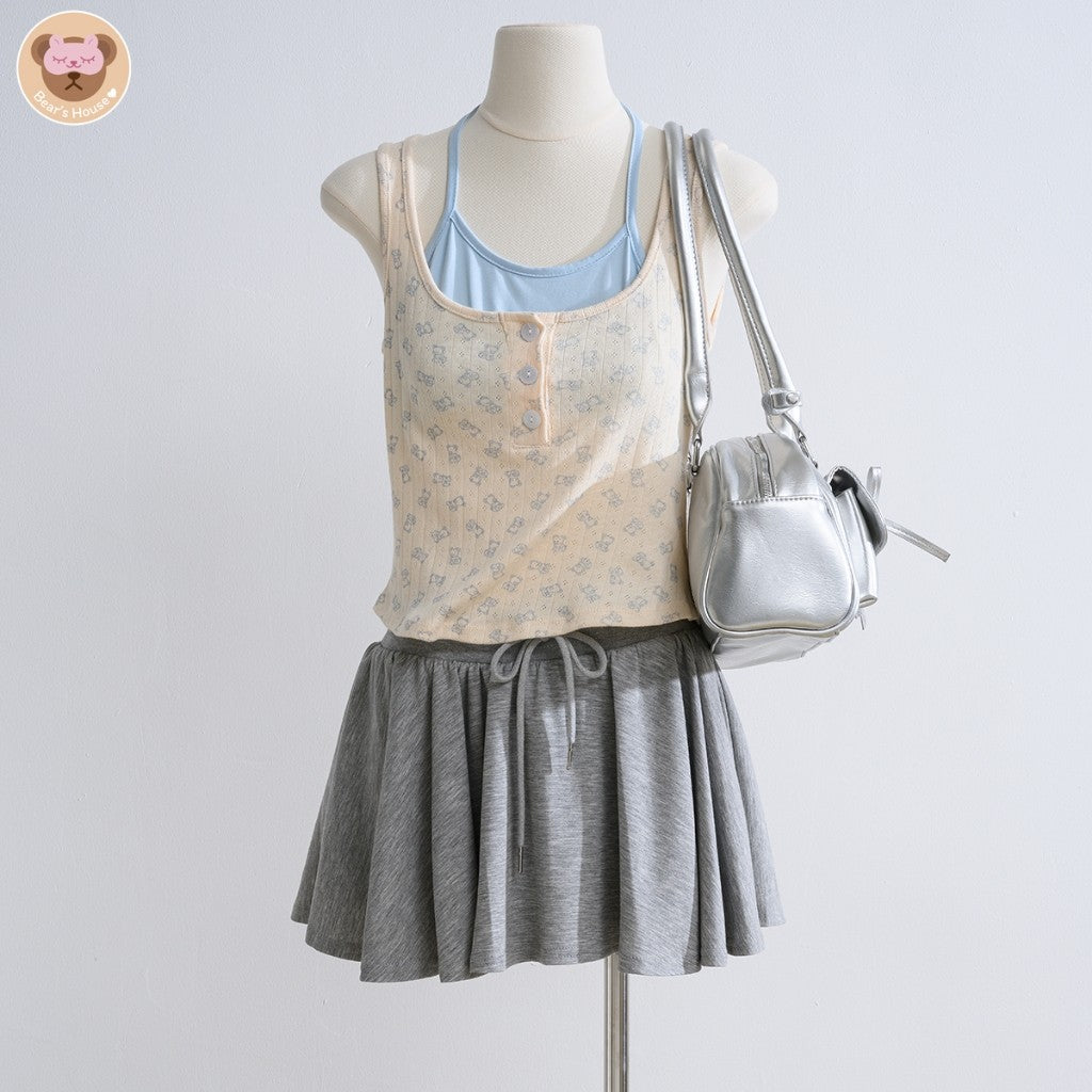 Glowy Crop เสื้อยืด ดีเทลมีสายเดี่ยวคล้องคอ ลายผ้าสกรีนน้องหมี สุดคิ้วท์ ดีเทลเว้าหลัง เเอบเซ็กซี่ ปนความน่ารัก