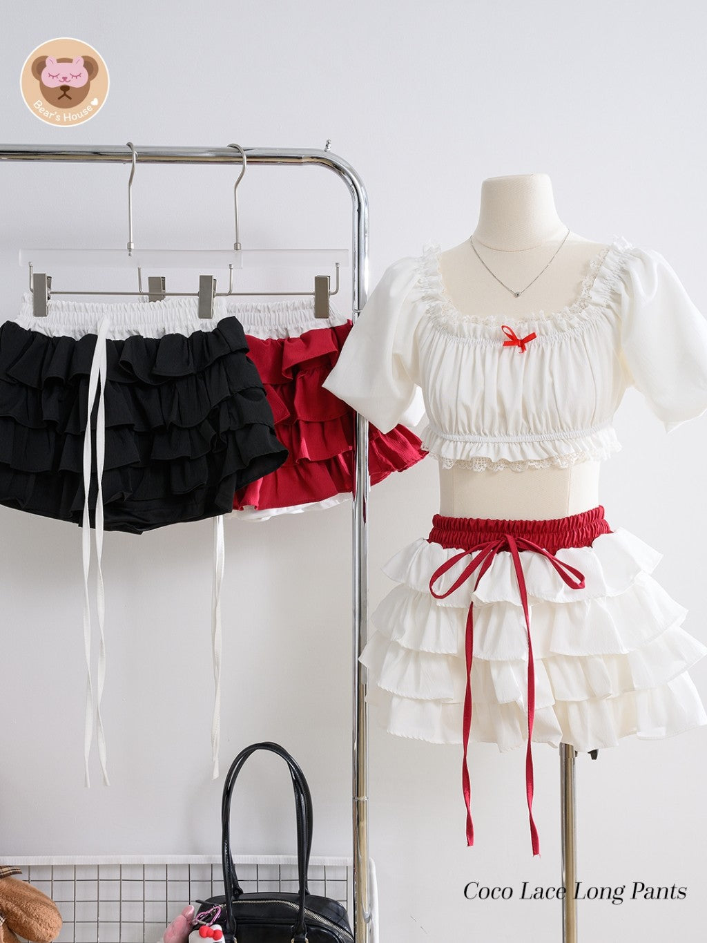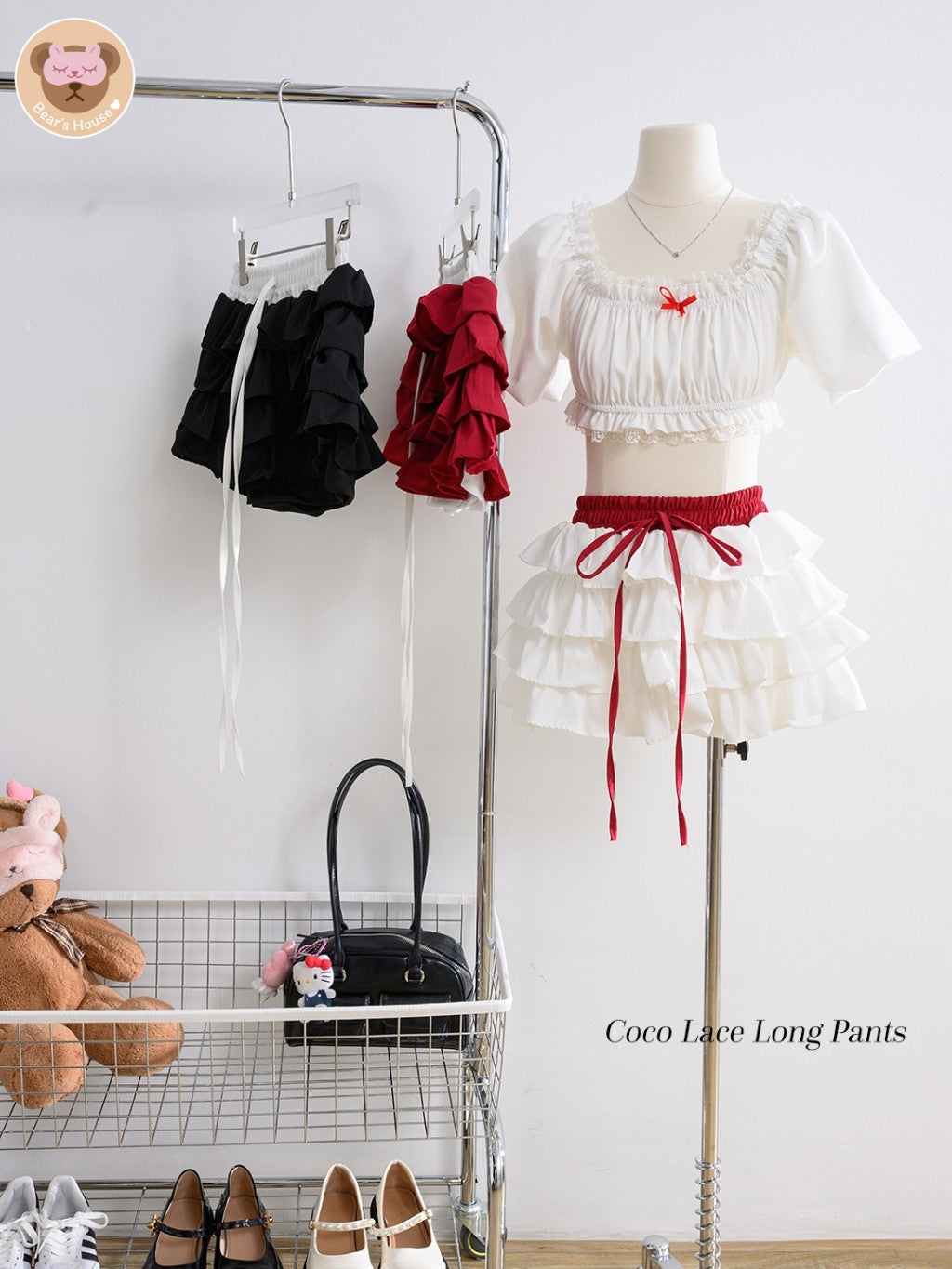 Jessi Skirt กางเกงกระโปรงระบาย 4 ชั้น ฟรุ้งฟริ้งมุ้งมิ้ง ดีเทลเเต่งเชือกผูกโบว์ด้านหน้า มีซับในกางเกง ไม่ต้องกลัวโป๊ แมทช์ง่ายยย น่าร้ากกกมากค่า❤️