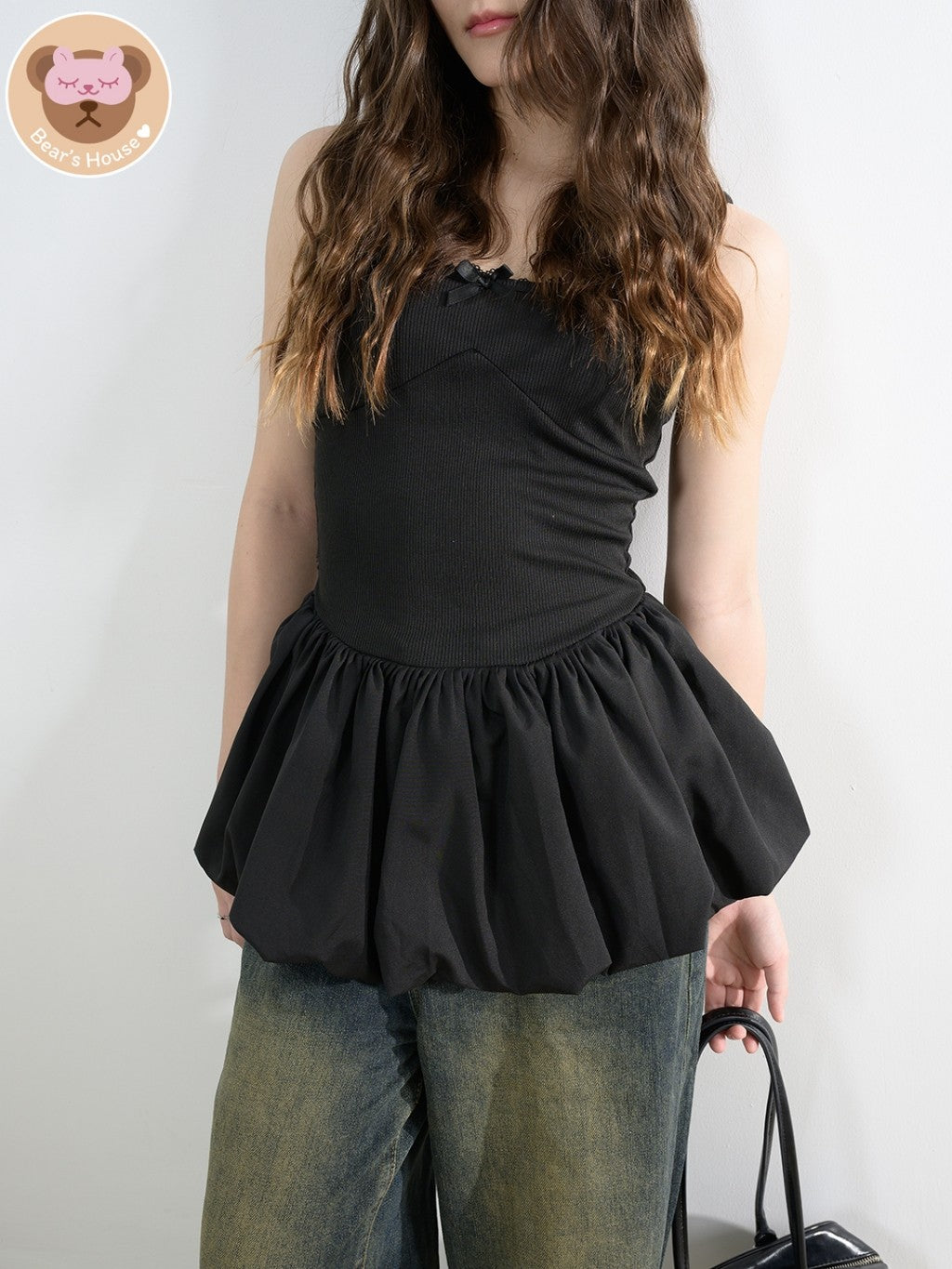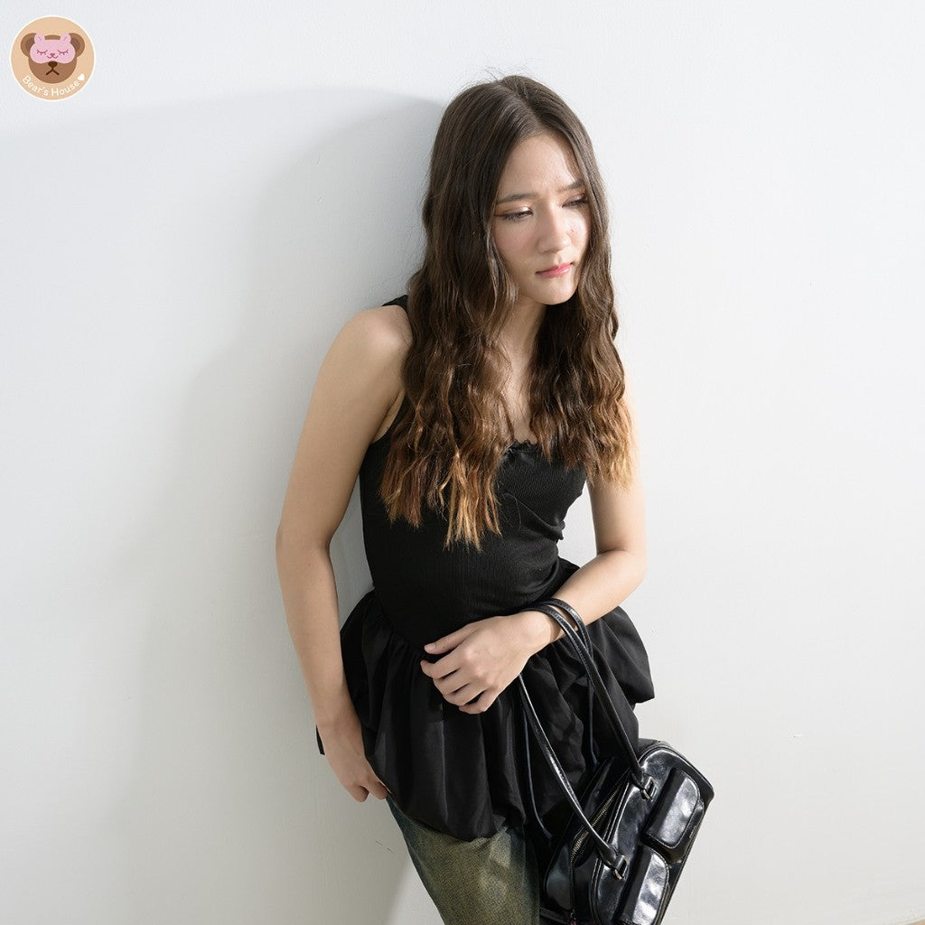 Juicy Mini Dress เดรสกระโปรงบอลลูน ดีเทลเป็นผ้ายืดตัดต่อกระโปรงทรงบอลลูน