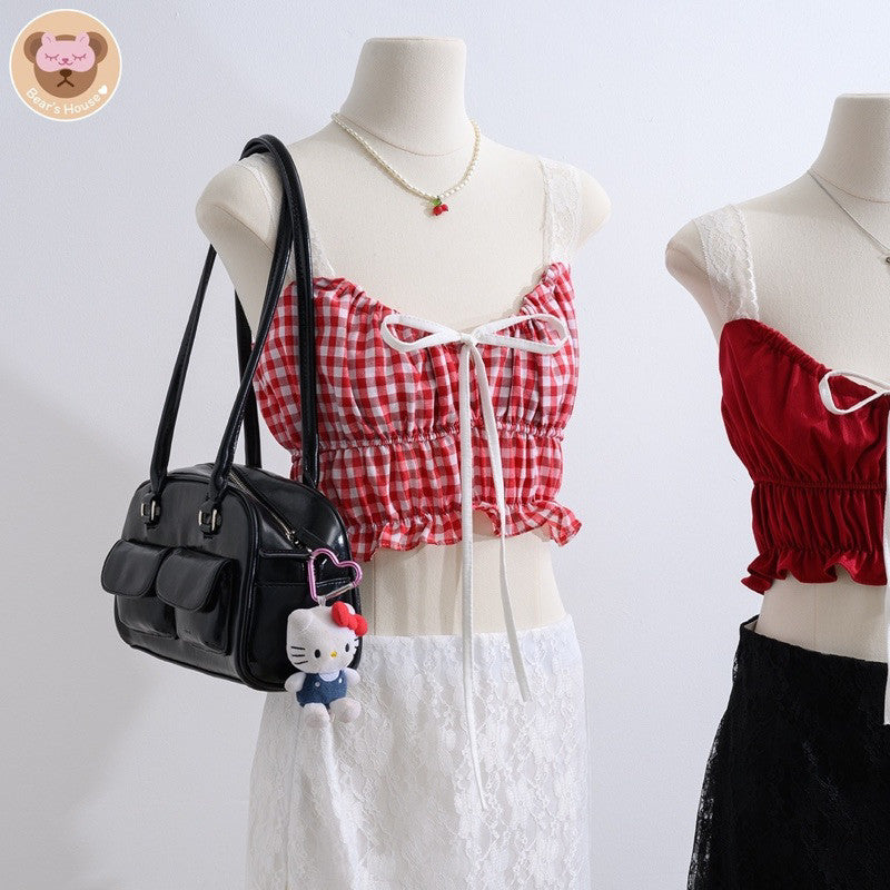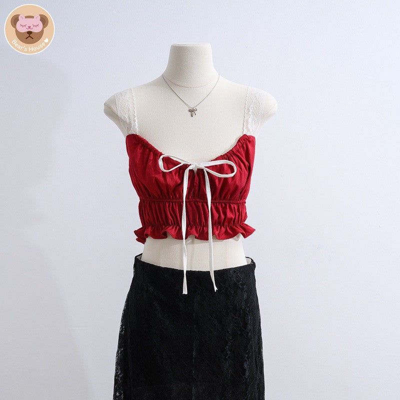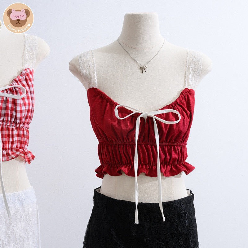 Lita Lace Top เสื้อครอปสายเดี่ยวลูกไม้ มีเชือกผูกโบว์ด้านหน้า น่ารักใส่เเมทกับกระโปรงหรือกางเกงก็ได้คือสวยจบปิ้ง อกปรับรูดผูกได้ตามใจชอบ น่ารักสุดๆ❤️❤️