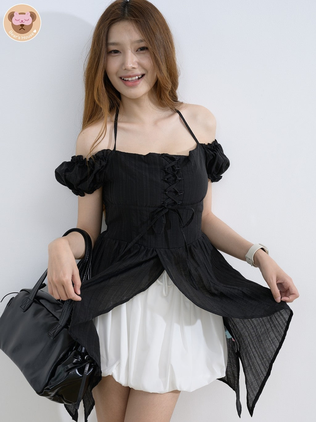 ด้วยเชือกถักด้านหน้า จะใส่เป็นปาดไหล่ก็ได้น้า เเมทกระโปรงหรือกางเกงยีนส์ขายาวก็ได้น่ารักสุดๆเลยค่า❤️