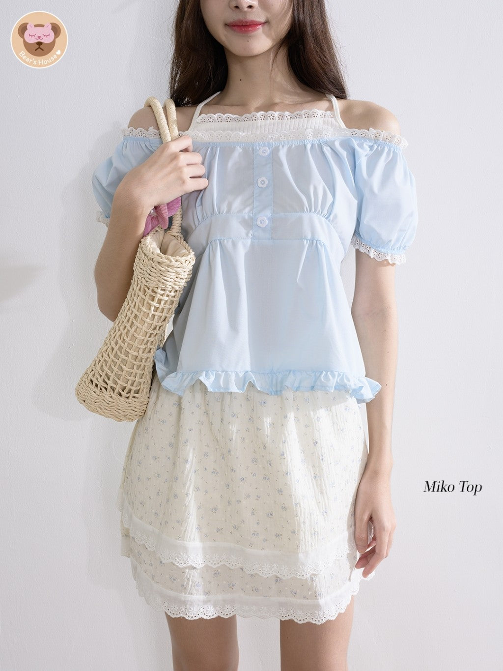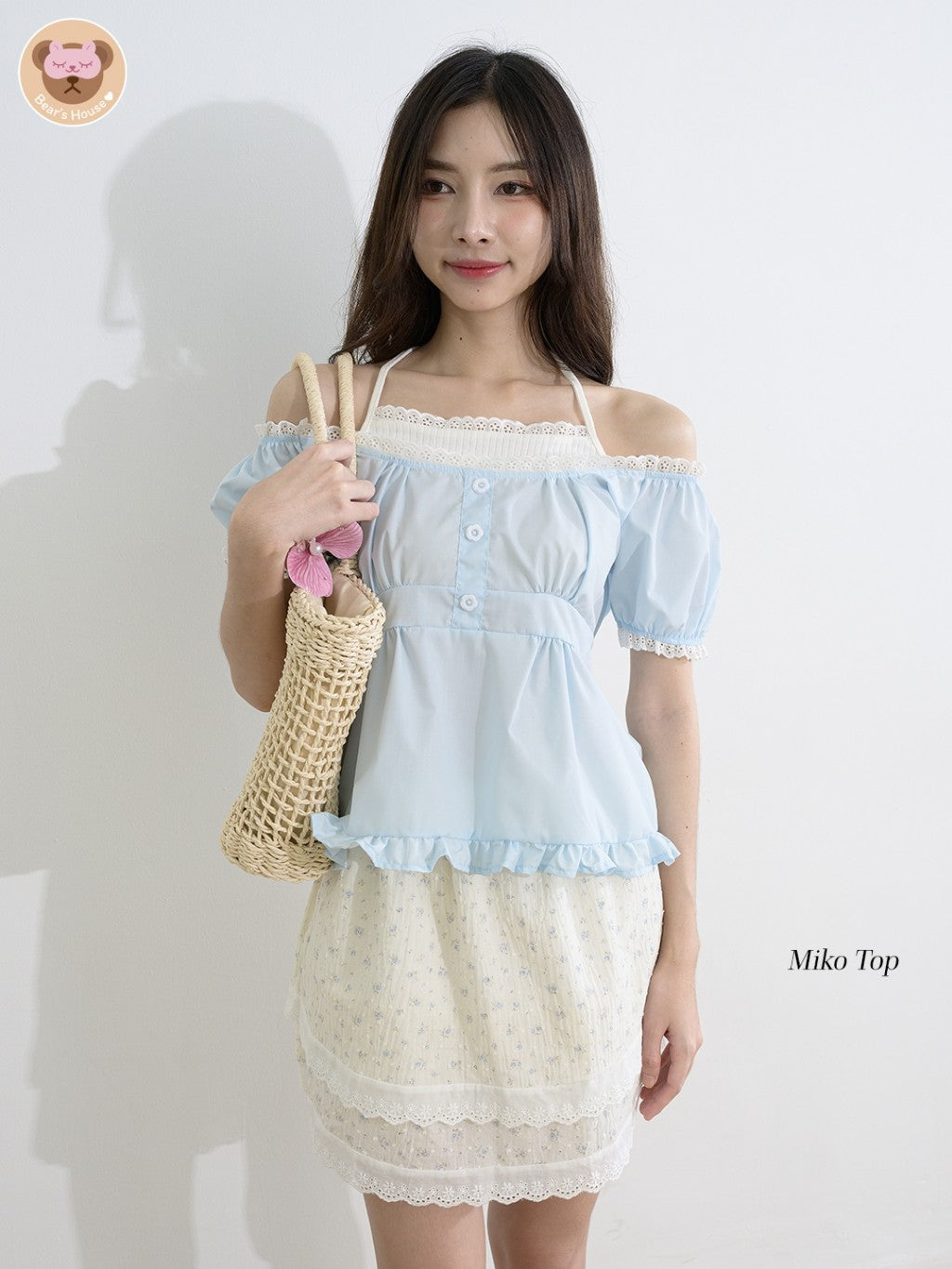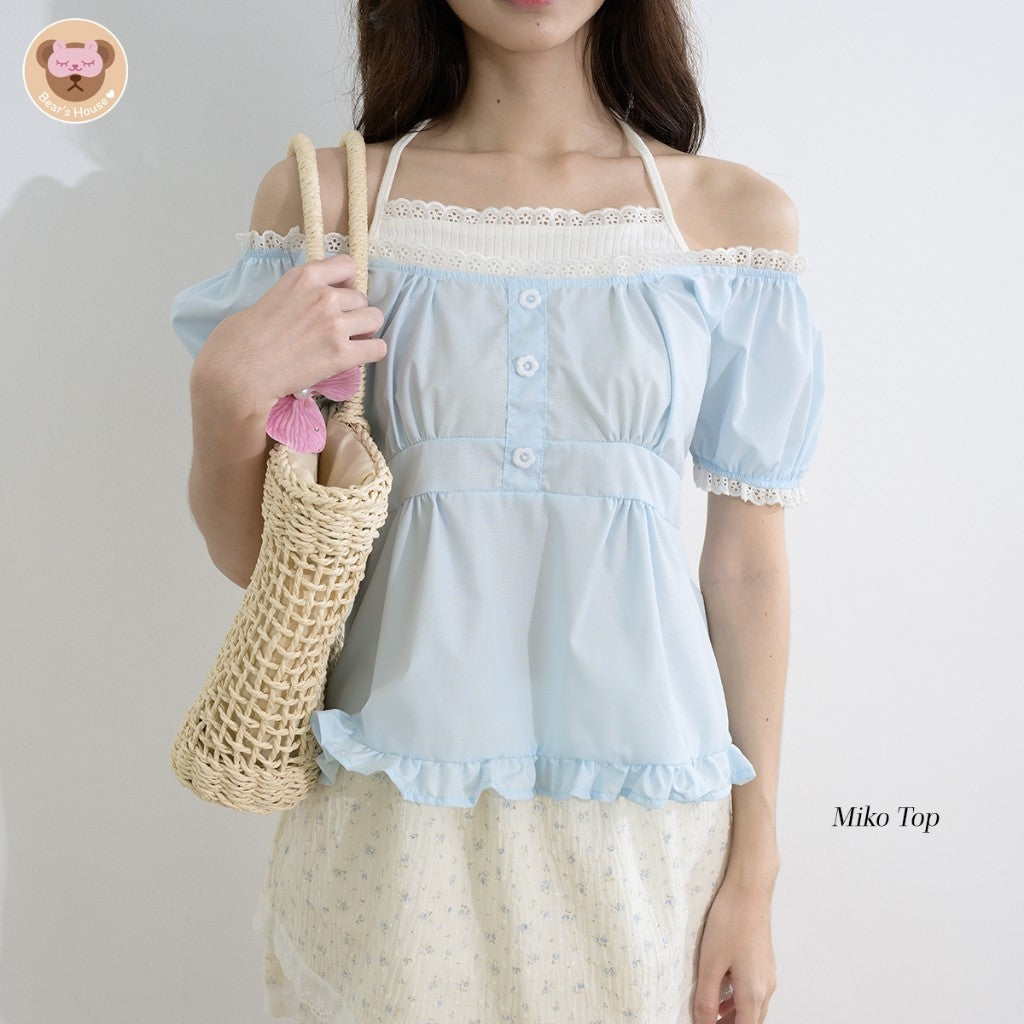 Miko Top เสื้อเเขนตุ๊กตา เย็บผ้า 2 ชิ้นติดกันดีเทลช่วงอกจะเย็บเป็นเสื้อติดกัน เหมือนว่าเราใส่ 2 ชิ้น ผูกคอได้ น้องน่ารักมาก ดีไซน์เก๋ จะใส่เป็นปาดไหล่ก็ได้งับ กระดุมเสื้อเป็นกระดุมเเต่ง ไม่สามารถเเกะได้ เเมทกับกระโปรงหรือกางเกงก็ได้ค่ะ