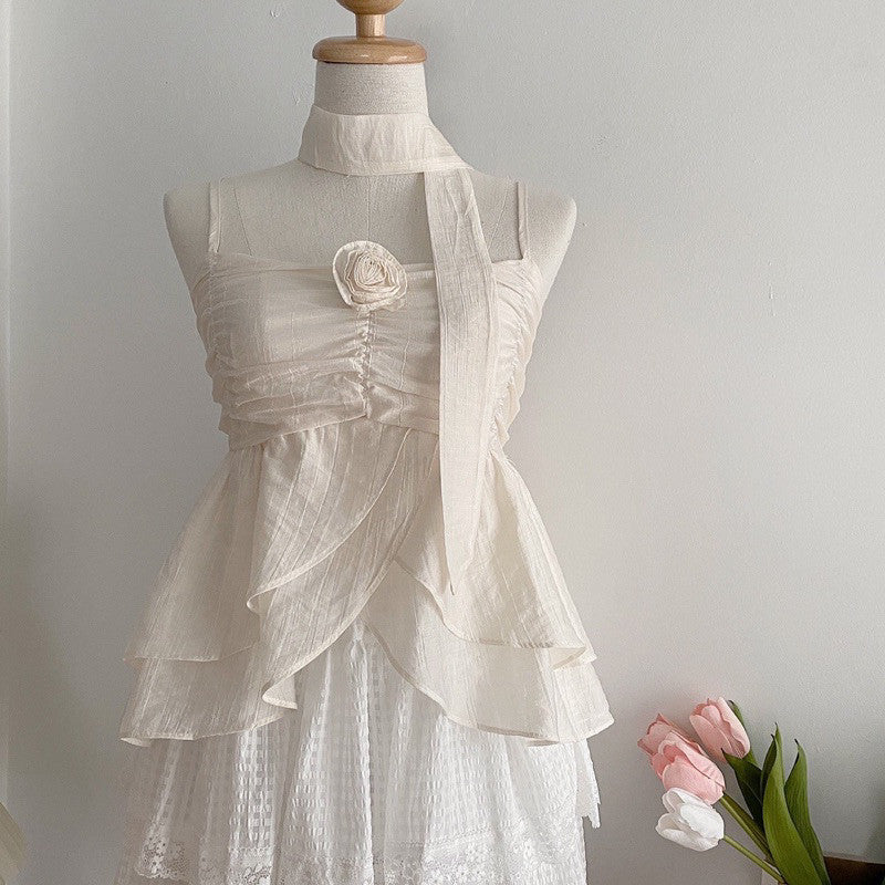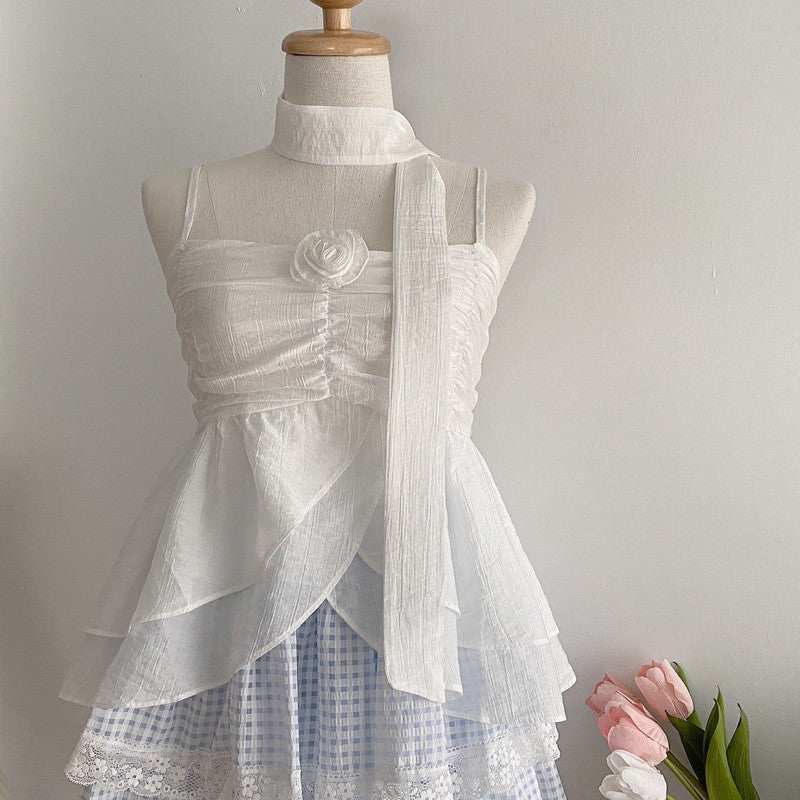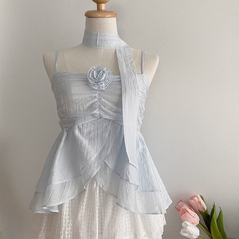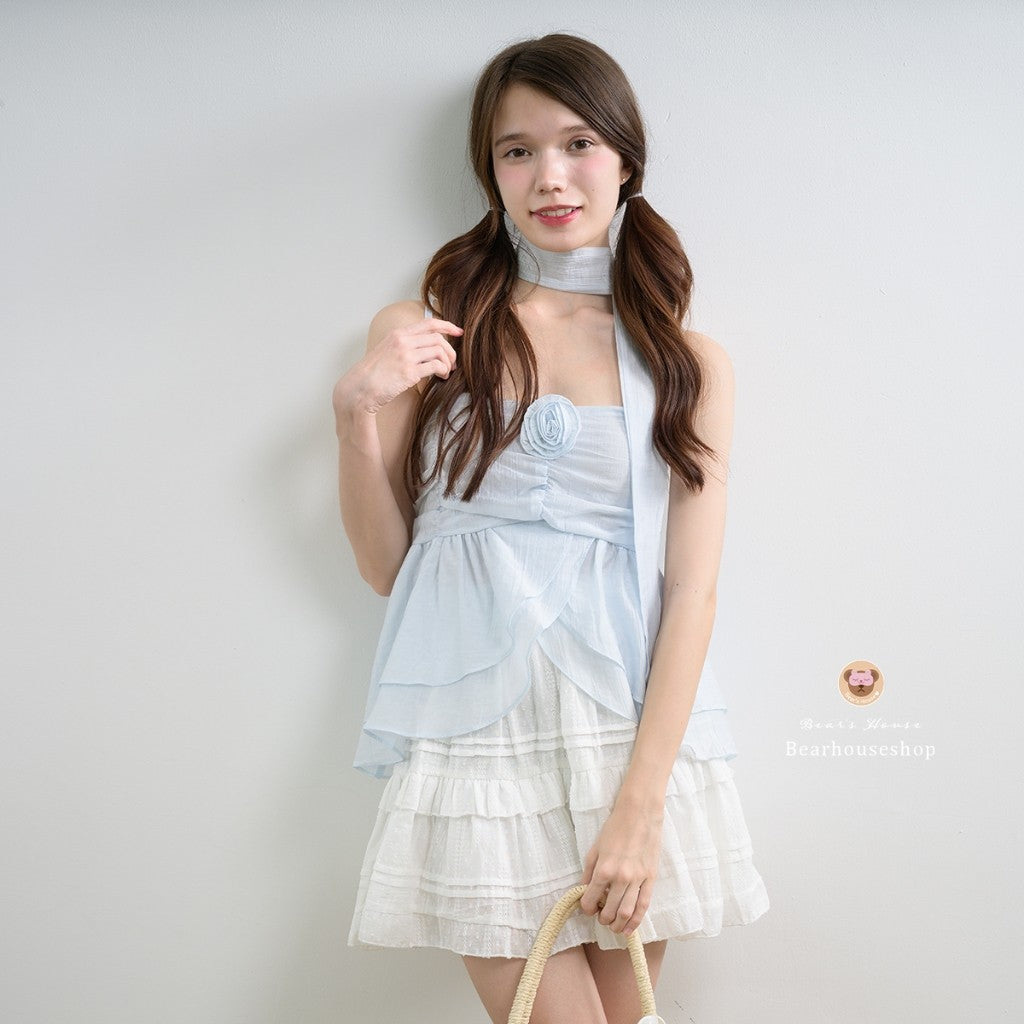 Up your style game with Miss Floral Love! This singlet and ruffled scarf combo features a delicate rose design on the chest. The good fabric, perfect cut, and soft colours make this model a must-have for fashion lovers. Get ready for Miss Floral Love!