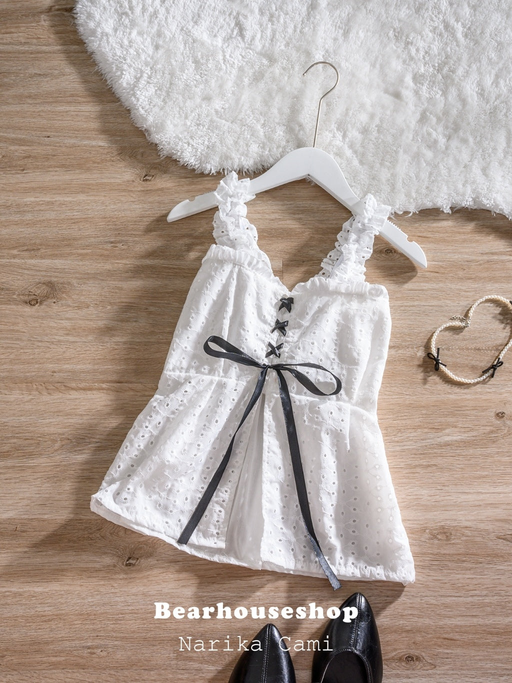Introducing the Narika Cami - a beautifully embroidered camisole that is both stylish and functional. The openwork embroidery adds a delicate touch and the stretchy shoulder straps and back smock ensure a comfortable fit. With a chic front ribbon, this cami is both elegant and modest.