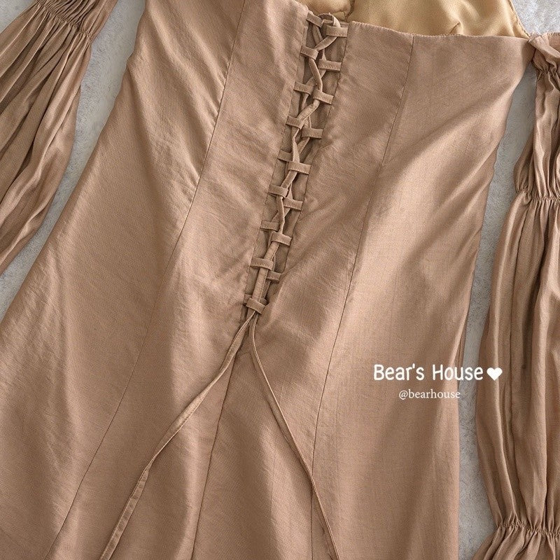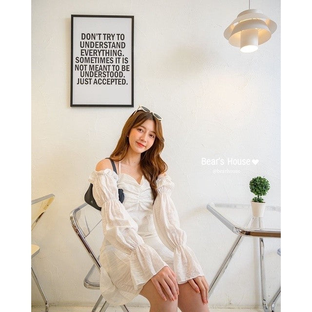 Feel cute and cheeky in the Nutty Minidress, boasting a young lady look with a G-string, long sleeves, and a ruffled hem. The off-shoulder detail and braided back rope make it adjustable and the front bow adds an extra touch of sweetness. Made with comfortable cotton and lined in every colour, this dress is perfect for a cafe or date. 🌟