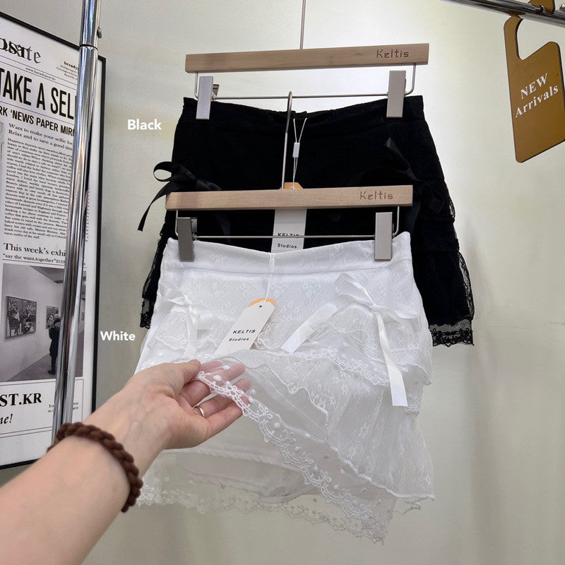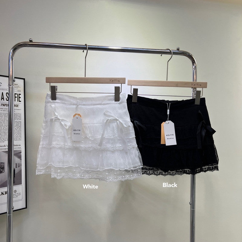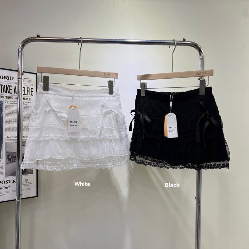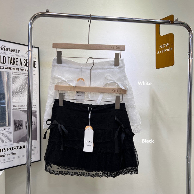 Orly Lace Skirt กระโปรงลูกไม้ตาข่าย เเต่งริบบิ้น🎀 งานป้าย