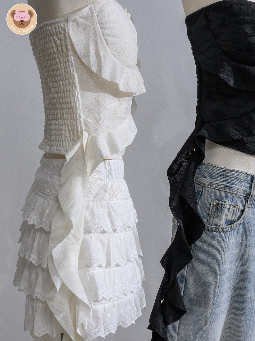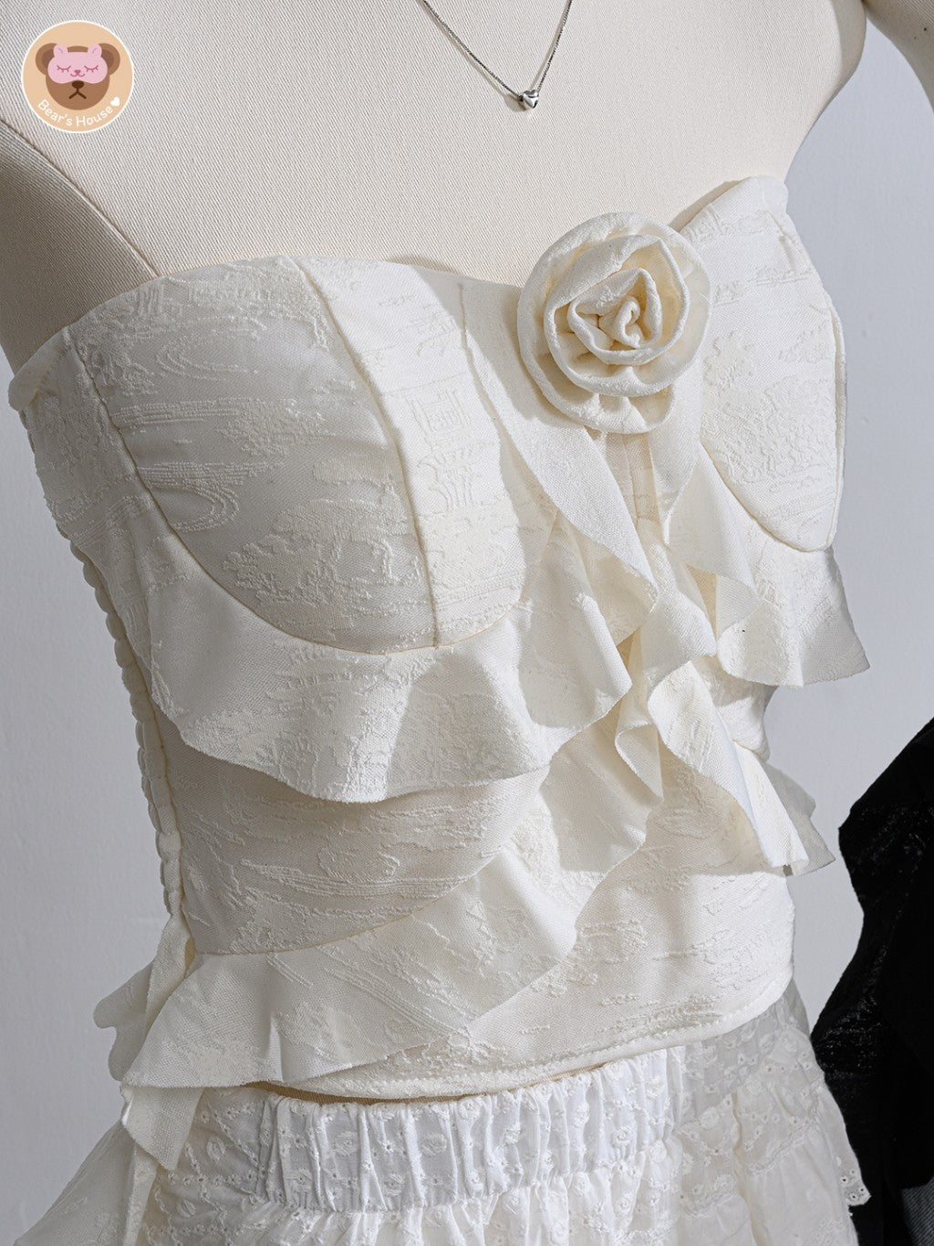 Sasha Crop เกาะอก ระบายกรุยกราย พร้อมเข็มขัดดอกกุหลาบ เเมทกับกระโปรง