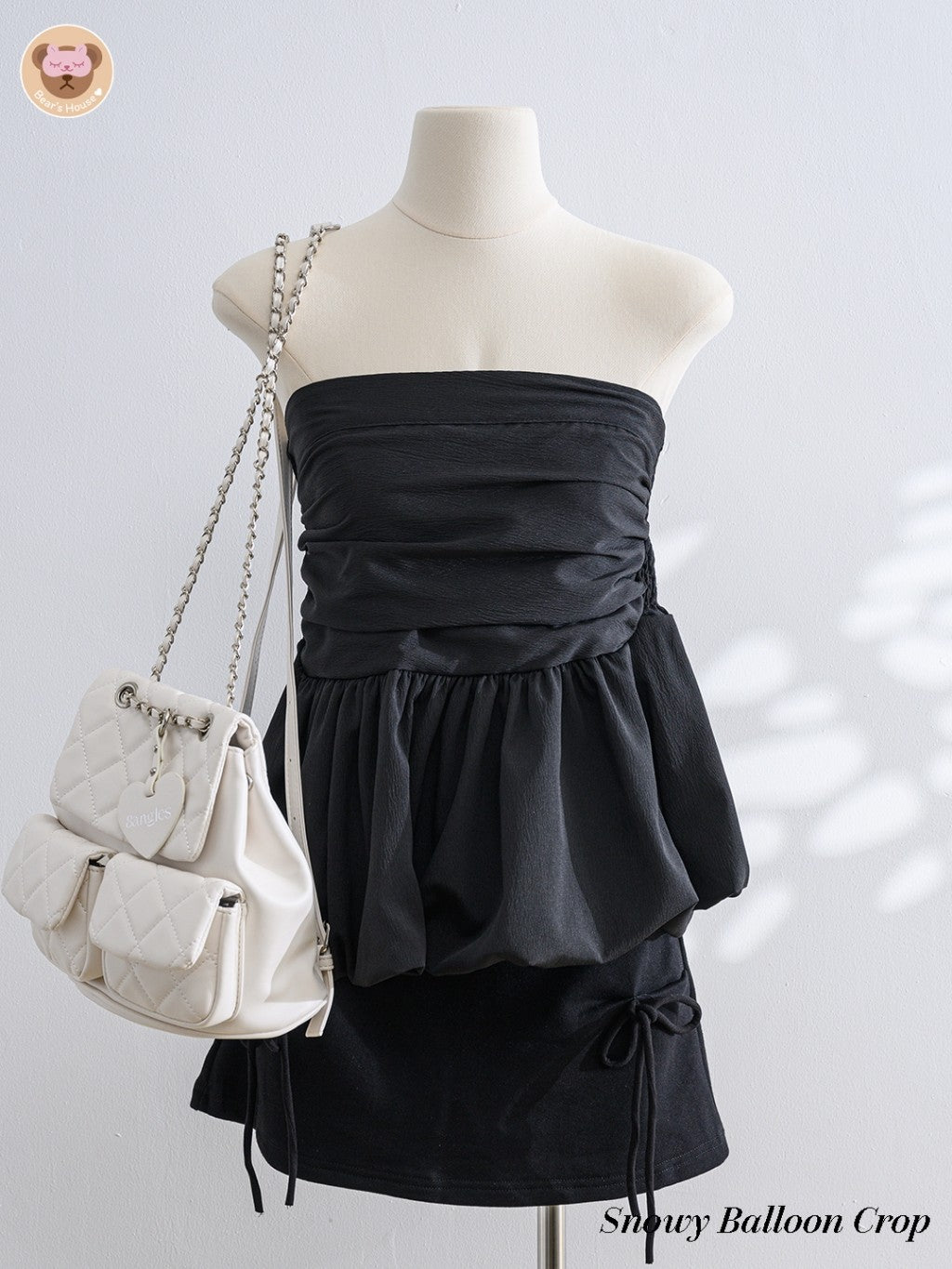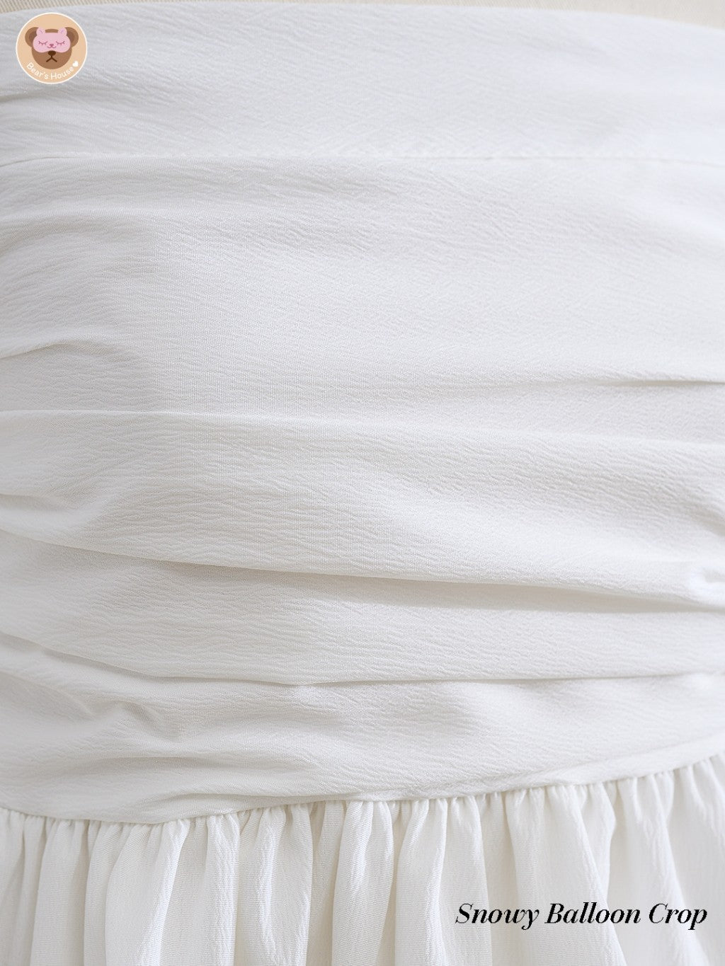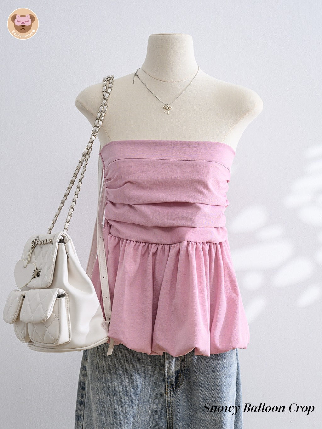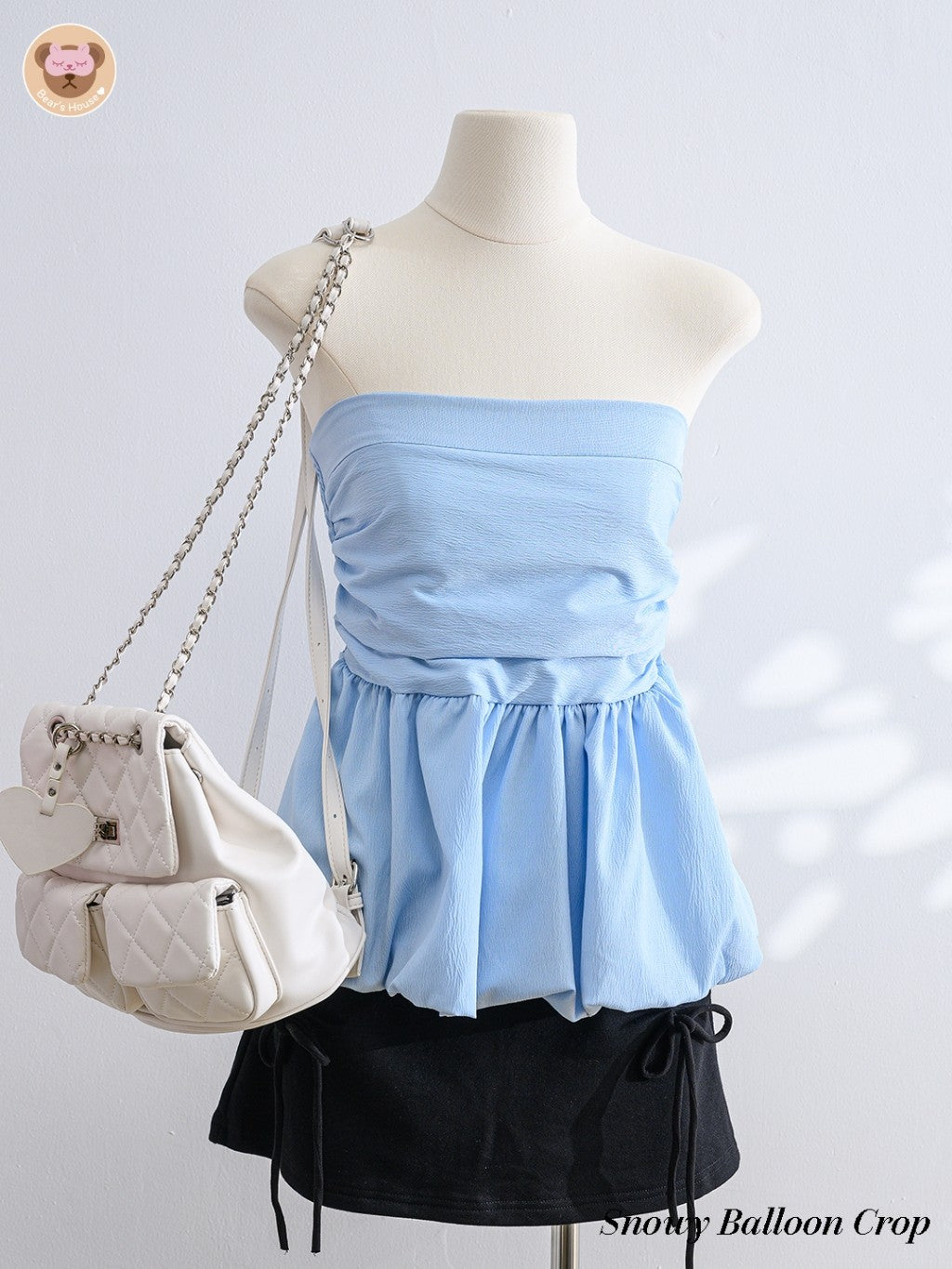 Snowy Balloon Crop เสื้อเกาะอก บอลลูน ผ้าครัช ดีเทลเเต่งจีบ หย่น ช่วงอก ด้านหลังสม็อค เย็บ 2 ชั้น ไม่ต้องกลัวบาง