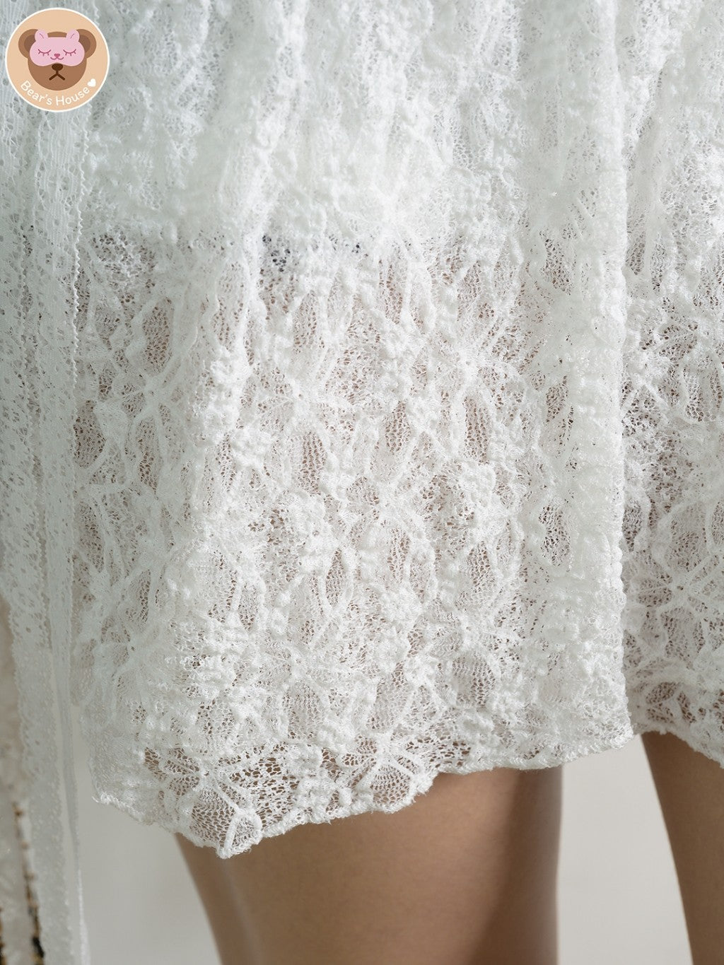 Retro Lace Skirt กระโปรงลูกไม้ เเต่งระบาย กรุยกราย ดีเทลมีซับในเป็นกางเกง มีซิปข้างง่ายต่อการสวมใส่