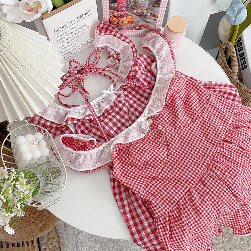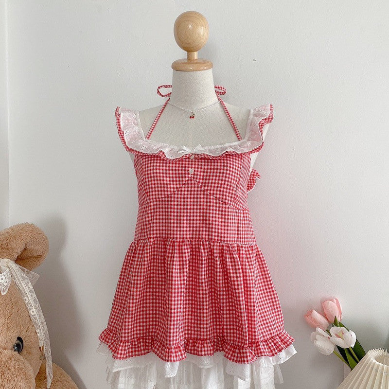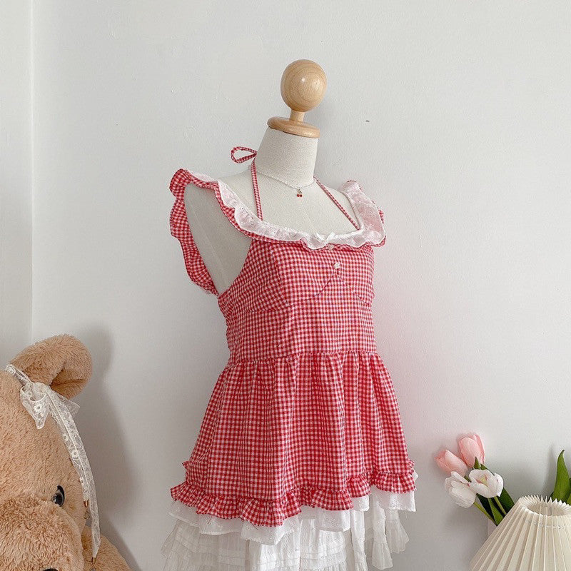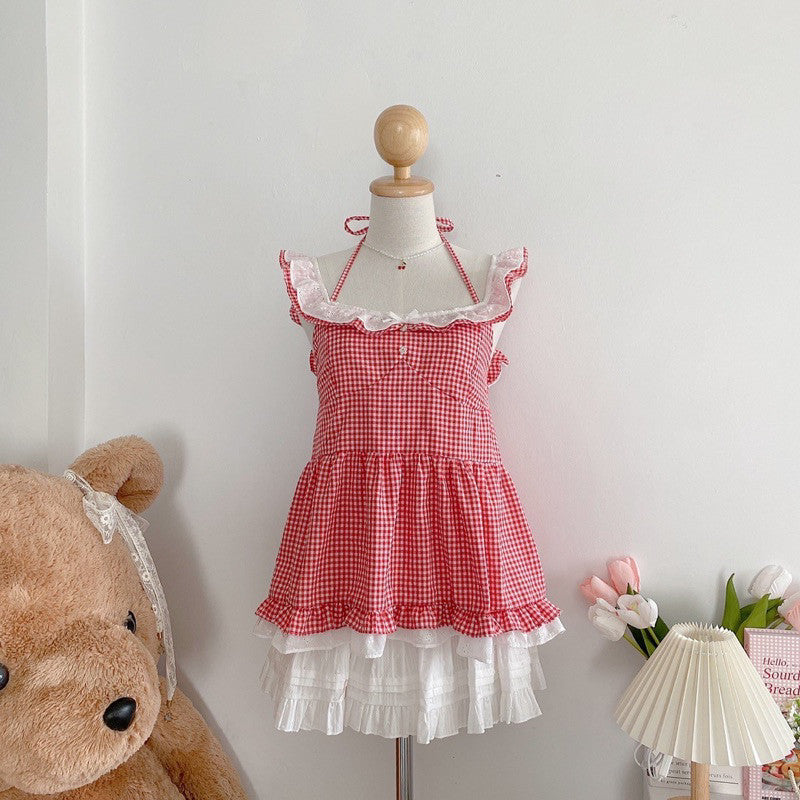 X' mas Crop สายเดี่ยวสก็อตเเดง เเต่งแขนระบาย