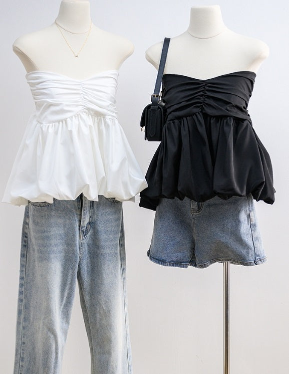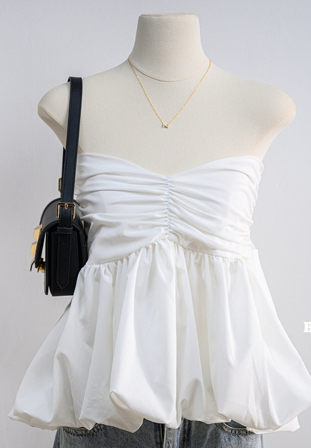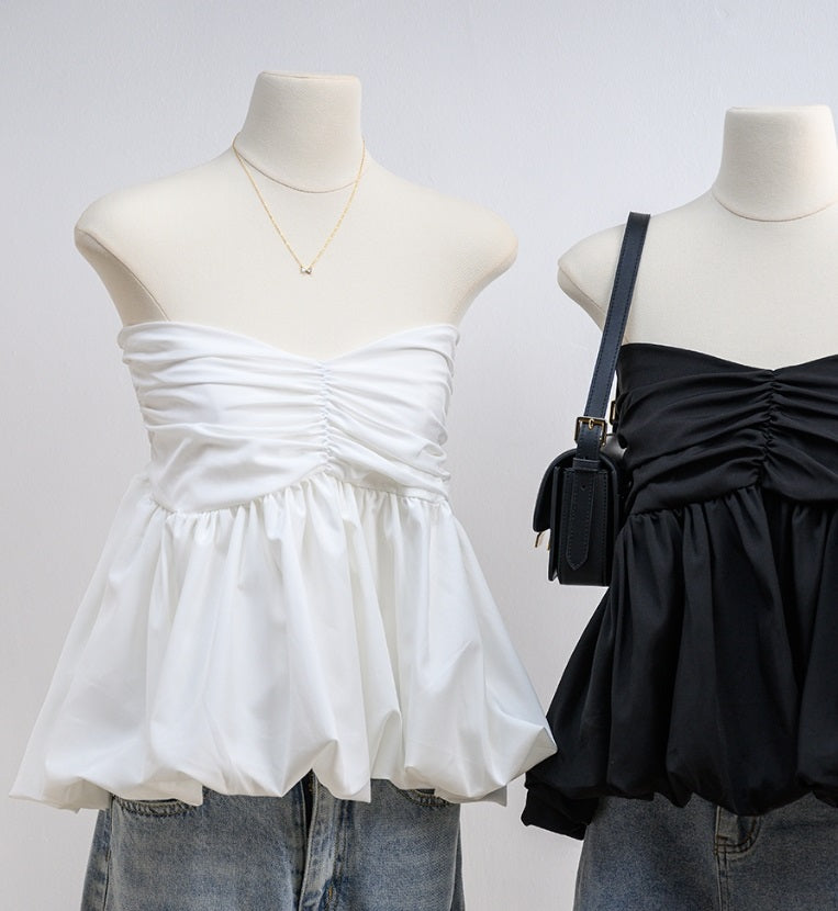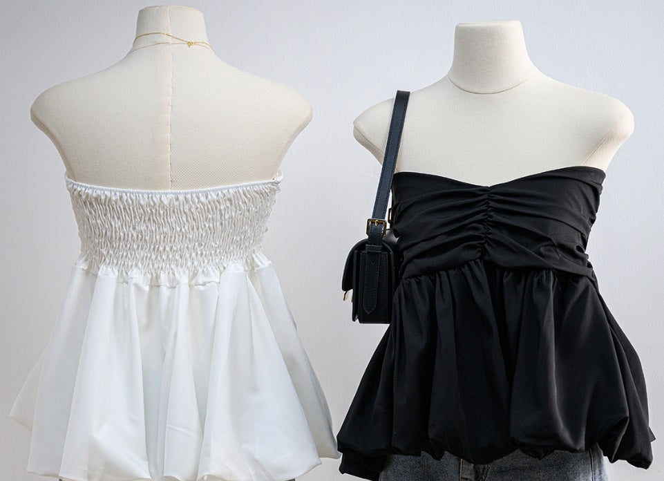 Introducing the Alicia Balloon Crop, the ultimate strapless blouse made of Italian silk. With a unique chest detail, this top boasts a flattering balloon shape and is sewn in 2 layers for a chic, yet lightweight feel. Pair it with any bottom for a puffy and cute look.