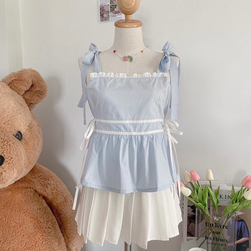 This spaghetti strap top boasts bow ties on the shoulders and many intricate details, such as charming side ties that enhance its appearance from all angles. Additionally, it includes a chest lining crafted to exceptional quality.