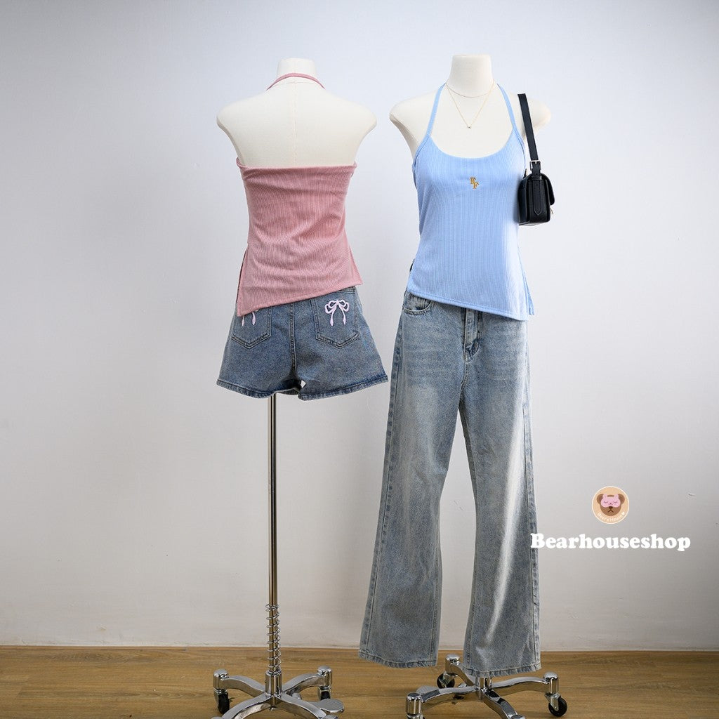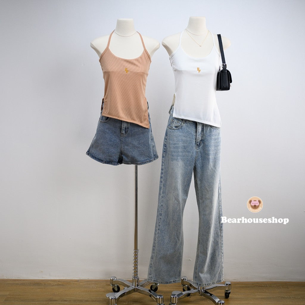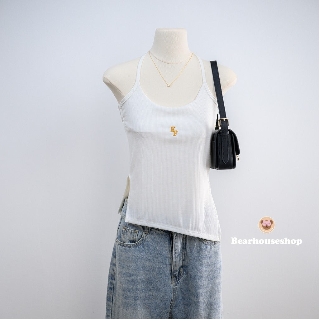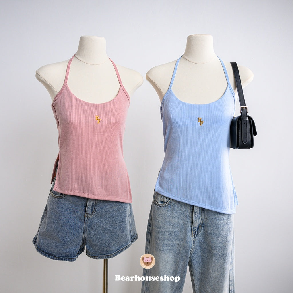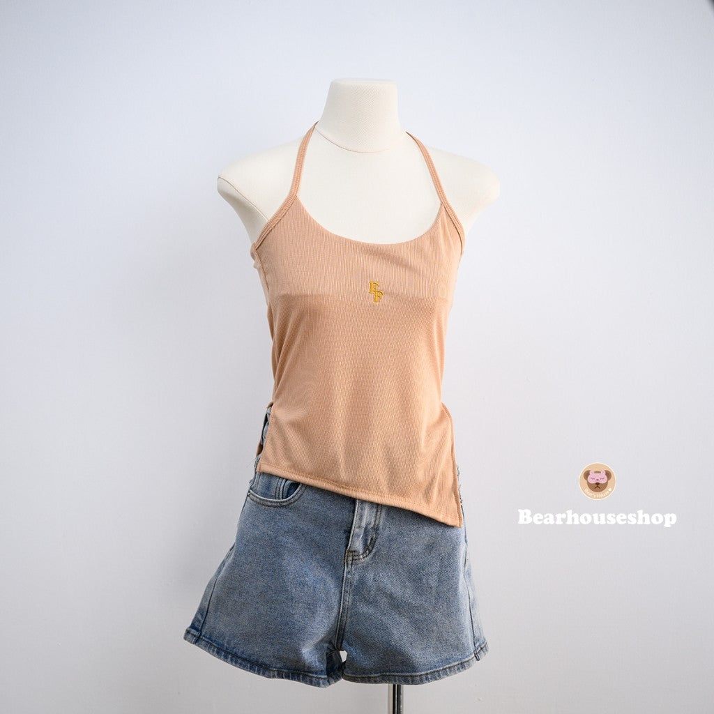 Effortlessly cute and strong, the Bina Top features a letter embroidery design and ribbed fabric that stretches to perfection. The halter neck style, side slit, and slanted front add an extra touch of chicness🔥, while the double-layer chest fabric offers extra support. Perfect for achieving a beautiful shirt style, this top is definitely a perfect ten.