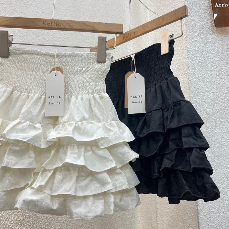Be fearless and fashionable in the Britney Skirt! This short skirt boasts 4 playful layers of ruffles and a lined interior. With a thin smocked waist, it pairs perfectly with any crop top. Perfect for photos, content creation, or a trip to the cafe.