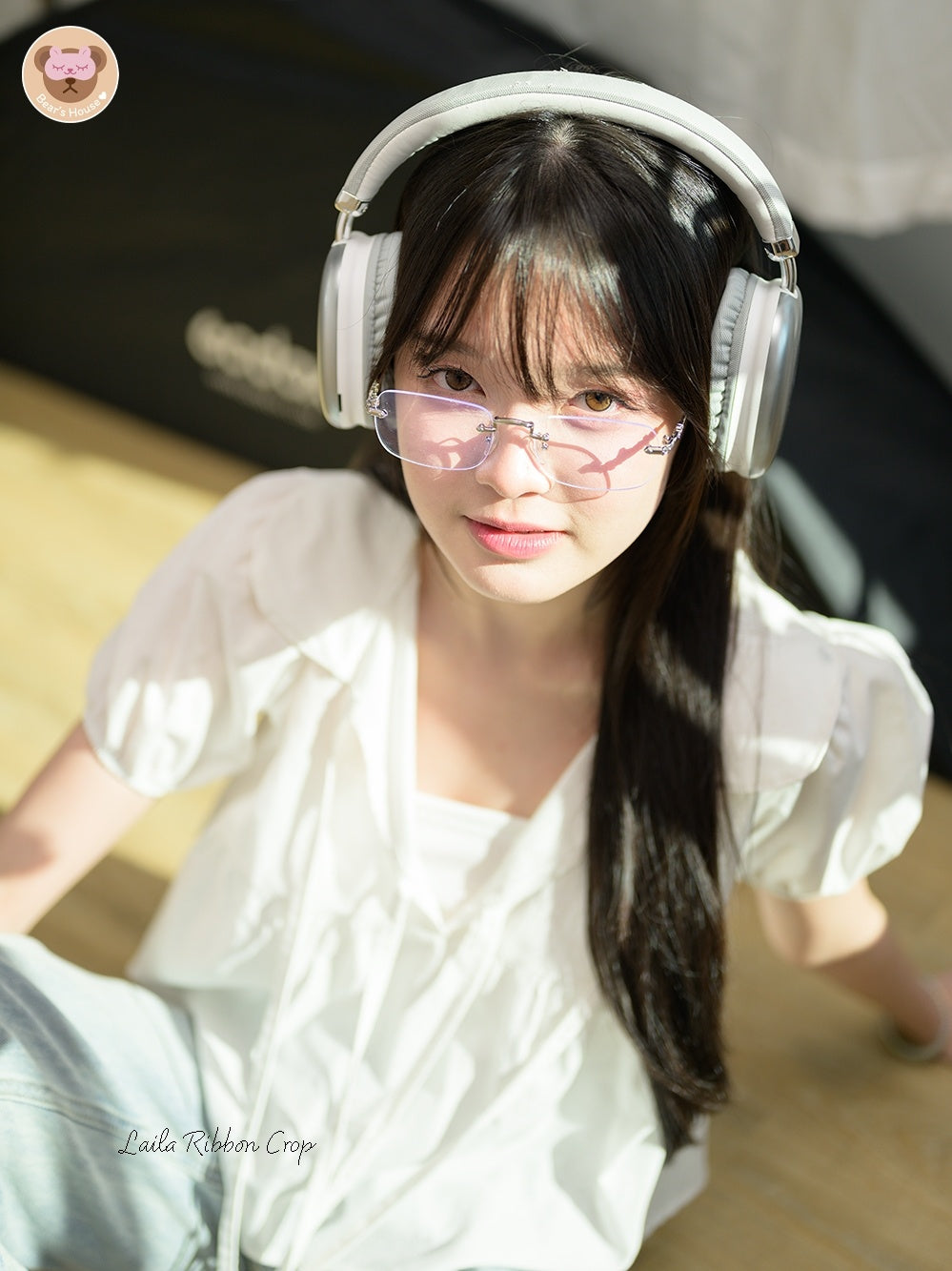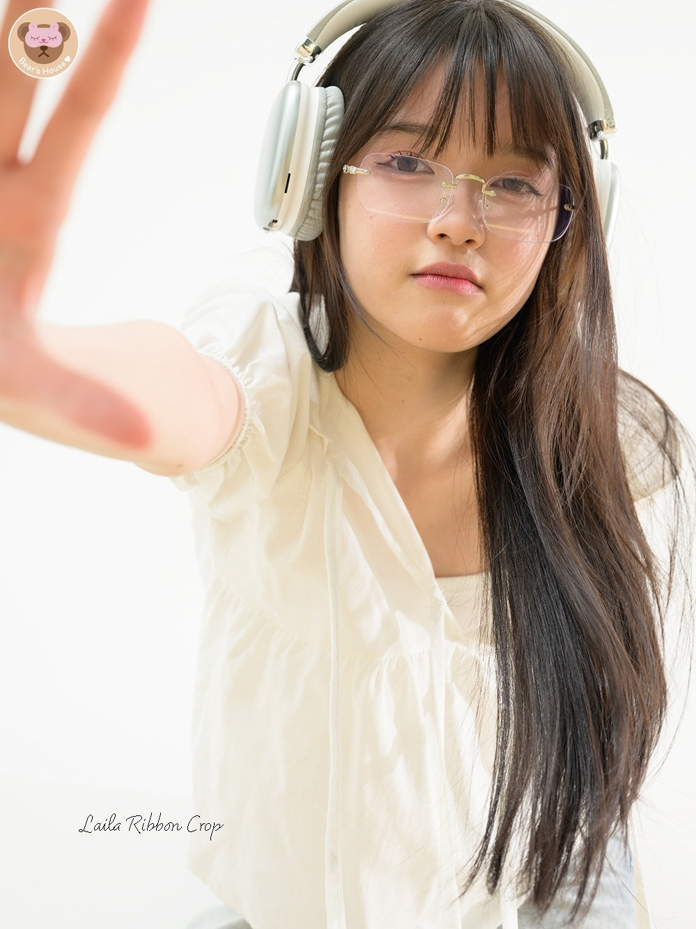 Laila Ribbon Crop, white lotus neck crop top. Adorned with a front bow and doll-like sleeves made of cotton. Comfortable and breathable, with a playful bow-tied rope detail on the chest. A little bit sexy and versatile - perfect for pairing with pants or skirts. It's sure to elevate any outfit, especially for those who aren't fans of tank tops. Featuring a single strap, it can also be tucked in for a different look.