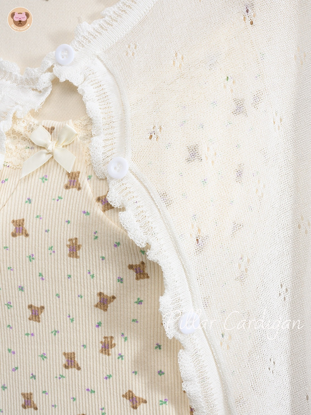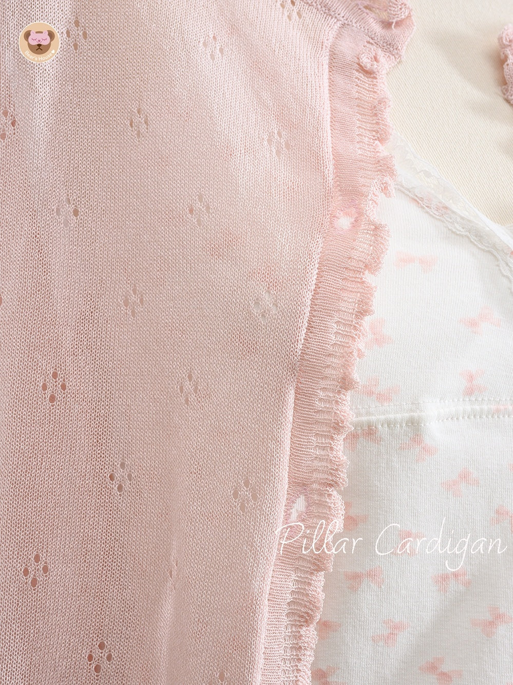 Be cute and cosy with the Pillar Cardigan, a lightweight wool coat. Featuring a charming flower stencil pattern, an intricate neckline and functional buttons. The stylish sleeves have cute vents, and you can even add a pop of colour with a sleek silk robe and a sassy single strap. ❤️
