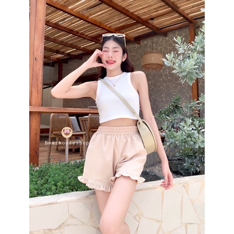 Get ready to rock your style with our Pongo Pants! Made from comfortable bark fabric, these shorts feature a ruffled hem and an elastic waistband for the perfect fit. With side pockets and a cute crop top, they're versatile enough to wear to sleep or a cafe. You'll never want to take them off!