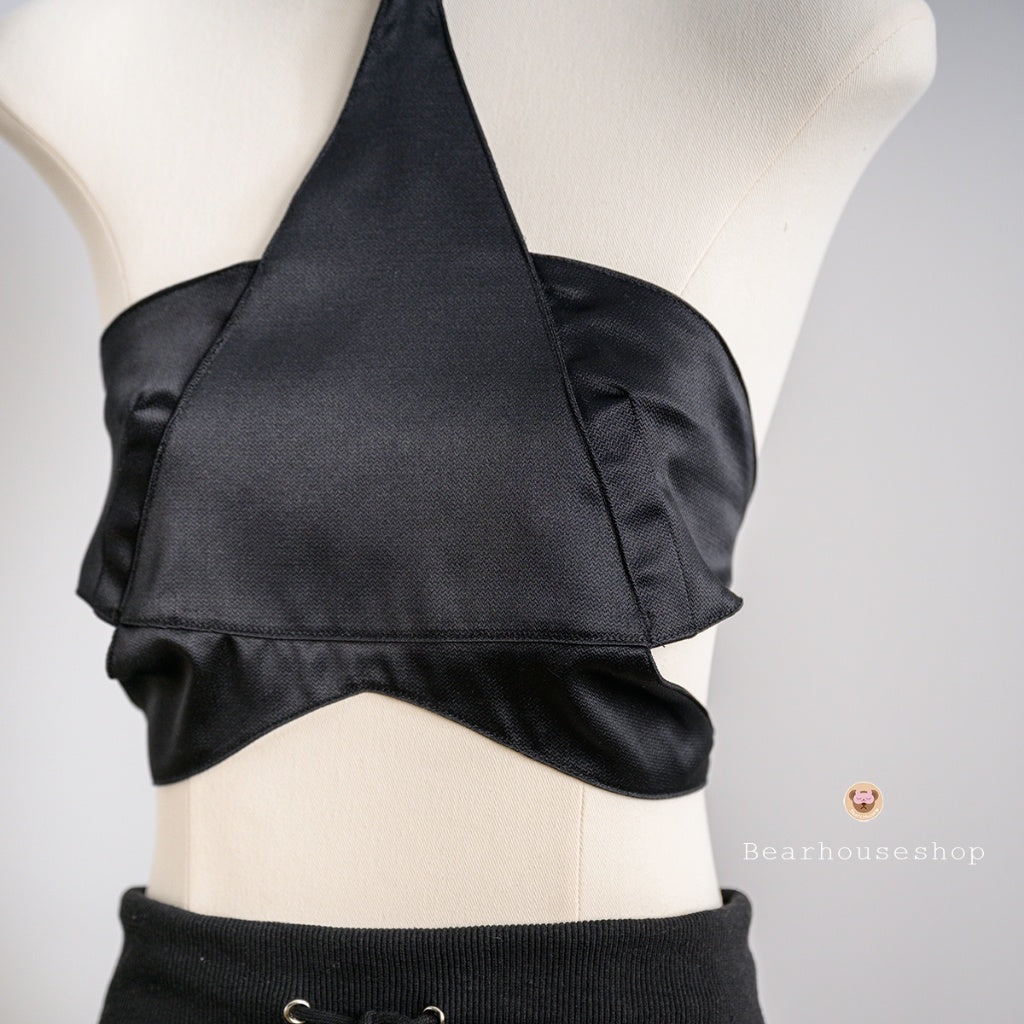 Unleash your inner rockstar with the Rockstar Crop! This playful crop top features a Lisa star design and tie-back straps, made from comfortable Sara fabric. No need to worry about exposure thanks to the cream-coloured bra sewn in the shape of a star. Versatile enough to be paired with a skirt or pants. Rock on!