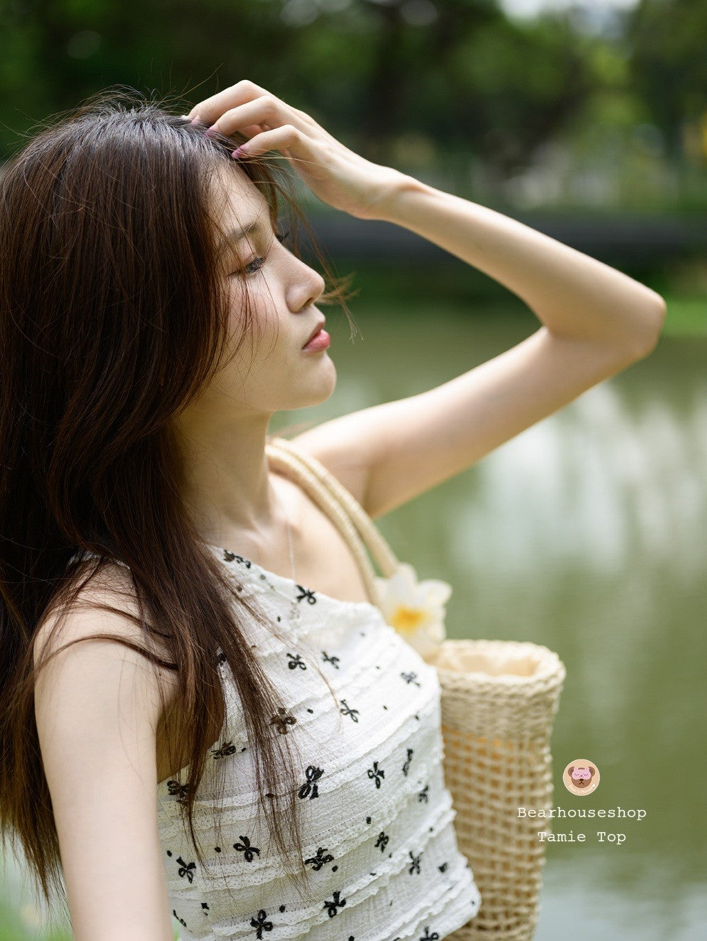 Upgrade your wardrobe with the playful and stylish Tamie Top! This one-shoulder shirt features a delicate lace fabric and charming bow pattern, creating a beautiful look that's sure to turn heads. Not only is it comfortable to wear, but it's also easy to match and oh-so-cute!