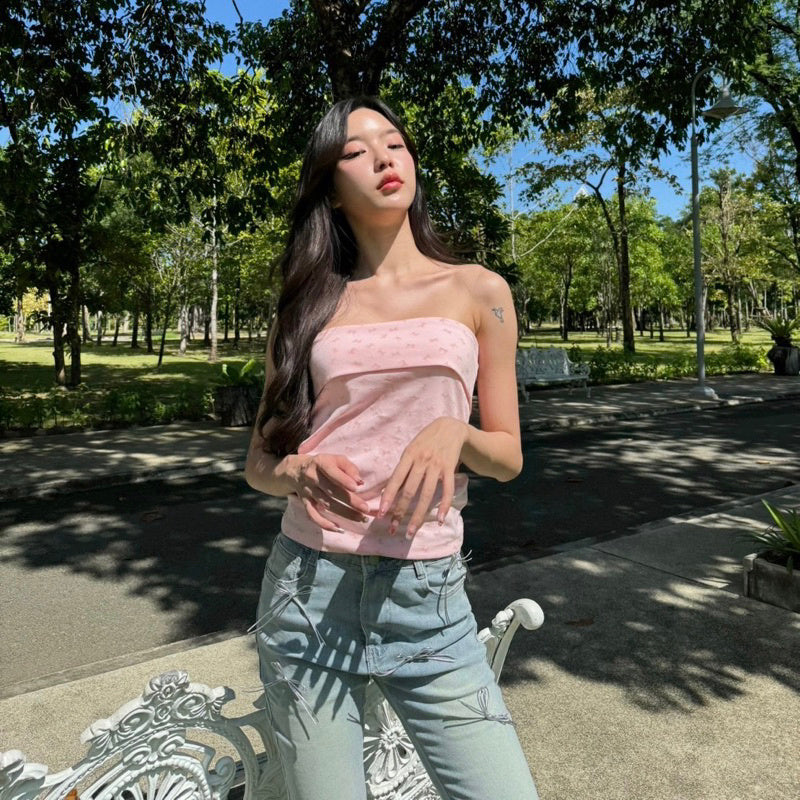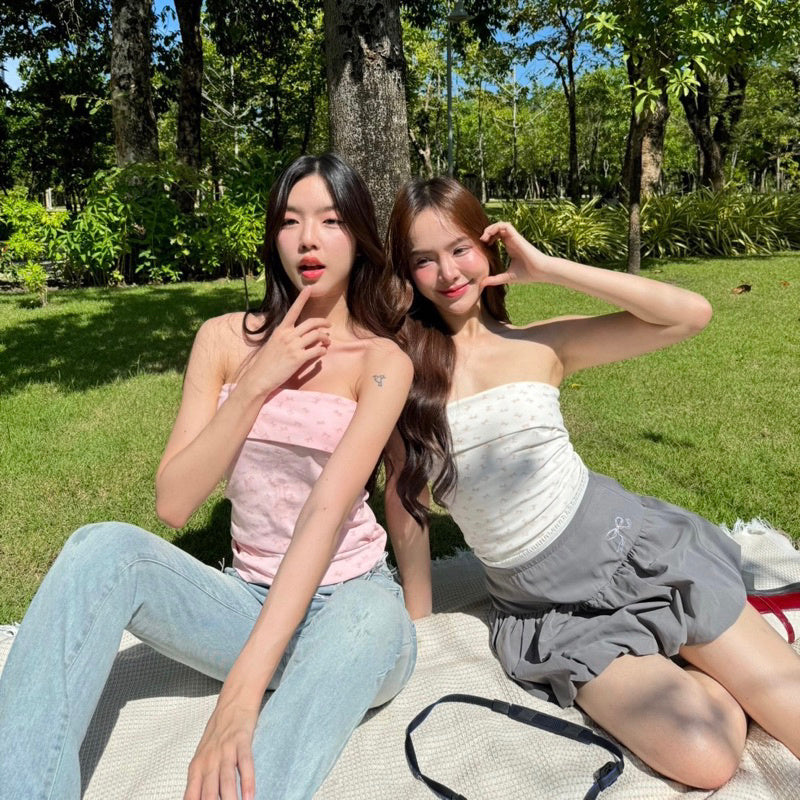 This Tube Bow Top is perfect for anyone looking to add a touch of cuteness to their wardrobe. With its strapless design and charming bow pattern, it's sure to be a hit. The fabric is just the right thickness, making it comfortable and flattering to wear. Plus, it pairs seamlessly with both skirts and pants. She's a real beauty! ❤️